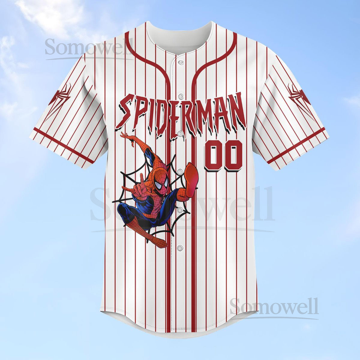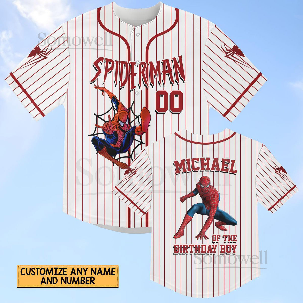 Custom Spiderman Baseball Jersey Cute Superhero Striped White Baseball Shirt Movie Jersey Birthday Boy Shirt Gifts For Him Men Boy_31
