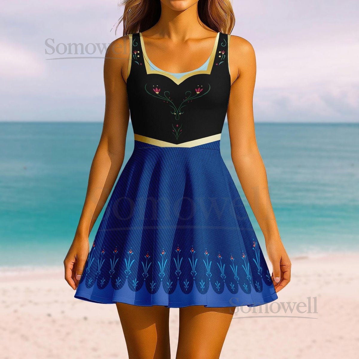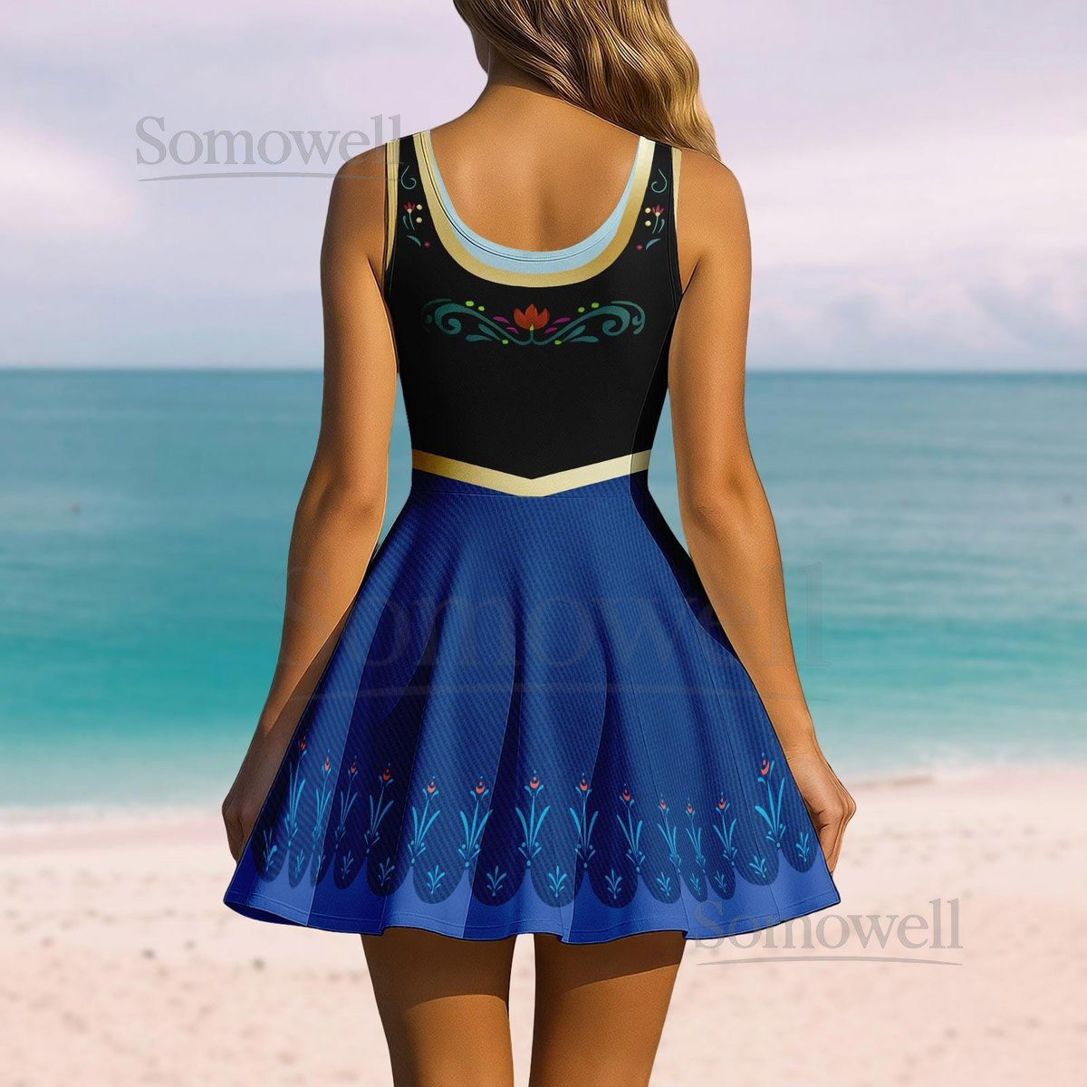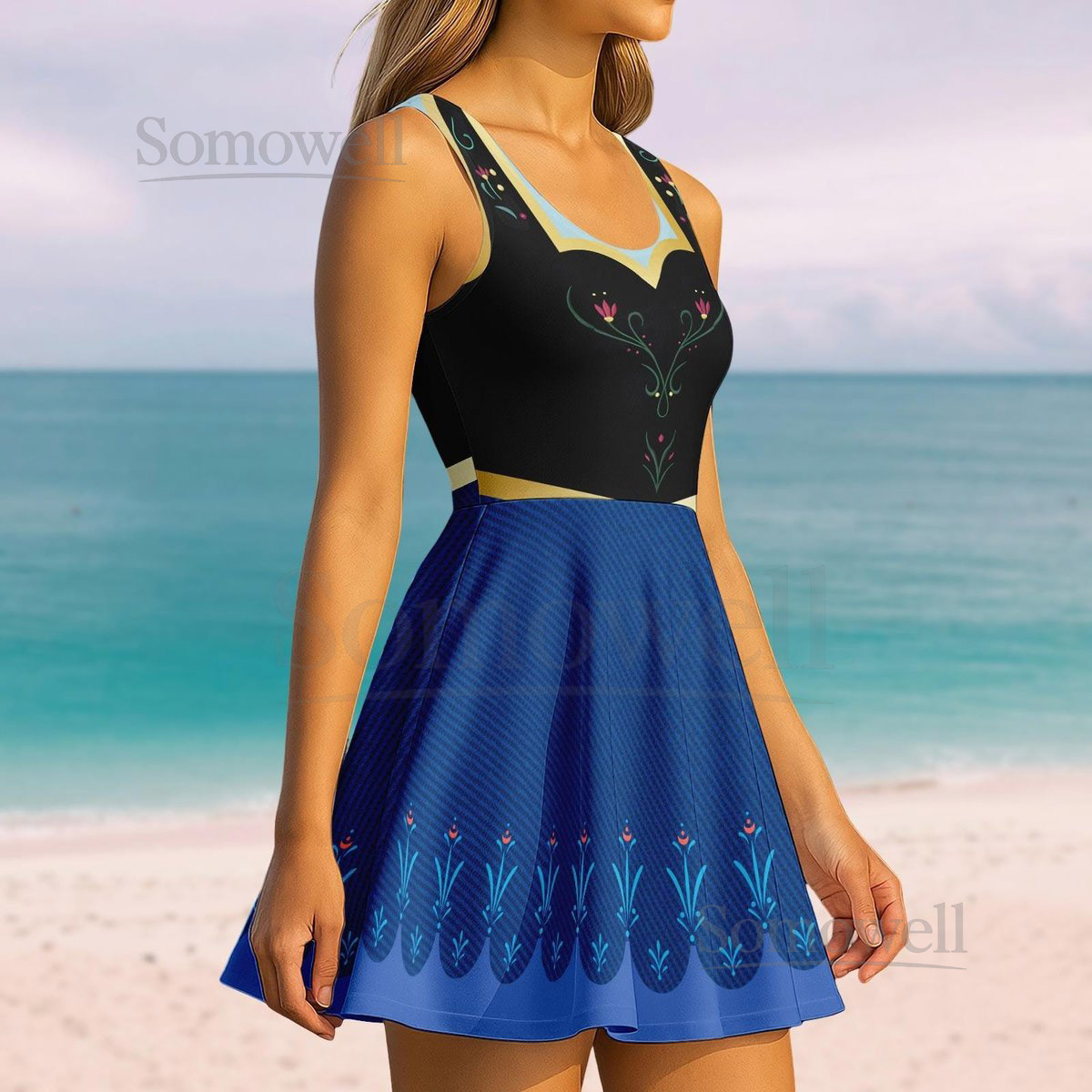 Anna Frozen Princess Skater Dress Disney Princess Women Dress Disney Frozen Cosplay Costume Dress Halloween Cosplay Running Dress_4