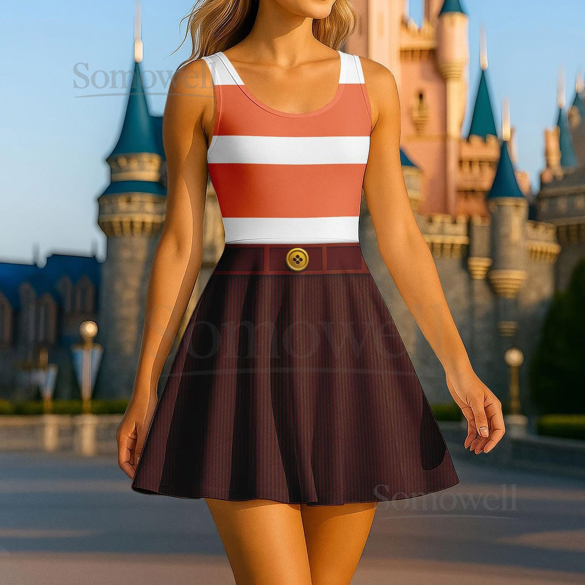 Anxiety Skater Dress Inside Out Costume Emotion Cosplay Pixar Fan Outfit Disney Cartoon Apparel Halloween Anxiety Women Dress_5