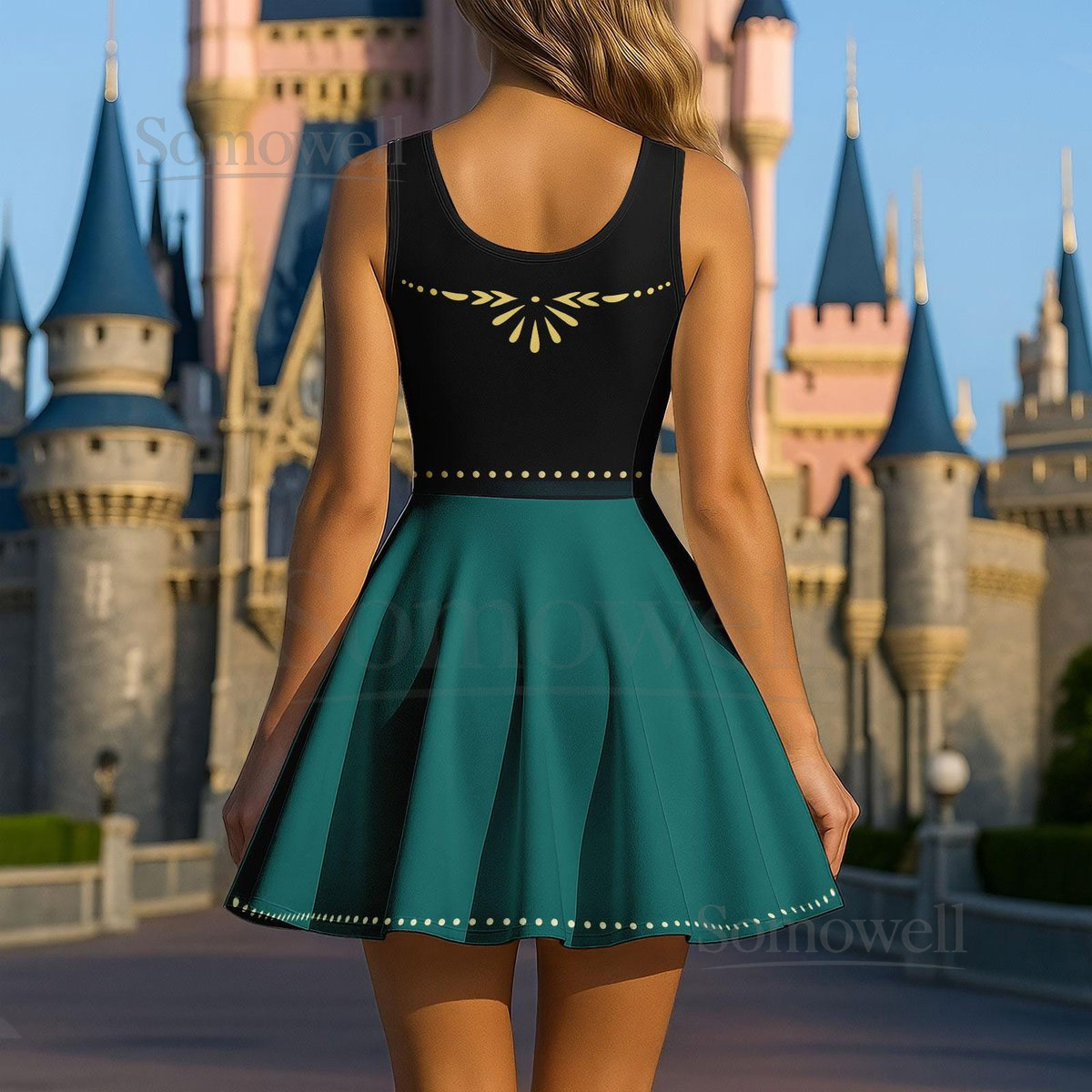 Anna Frozen Cosplay Skater Dress Disney Princess Women Dress Little Sister Elsa Frozen Costume Disney Run Dress Halloween Cosplay_3
