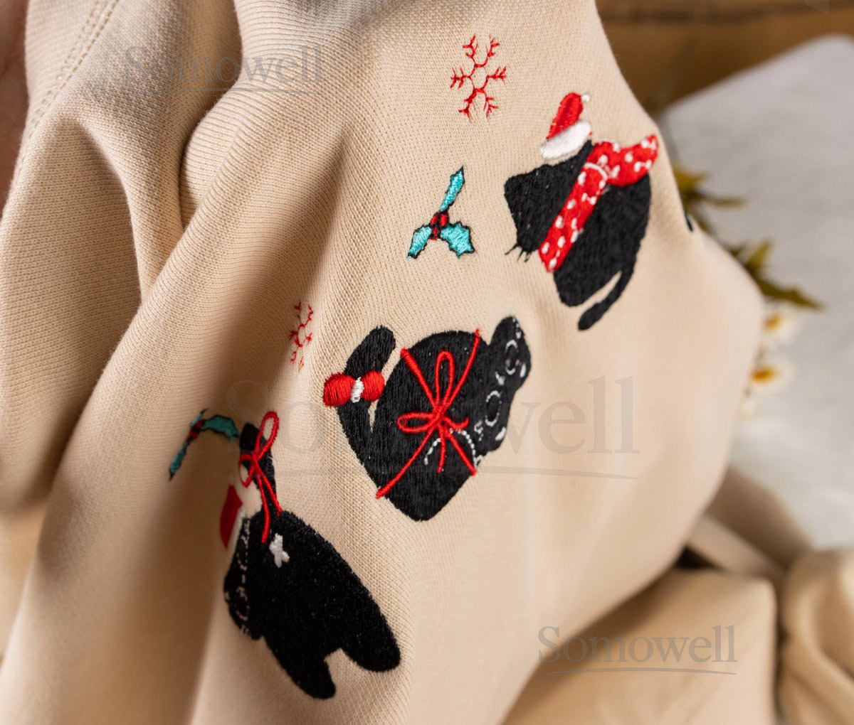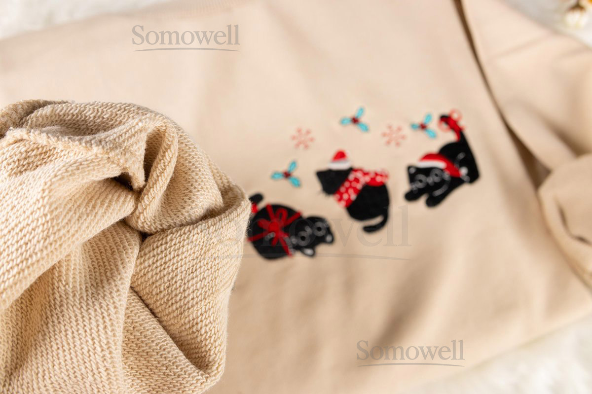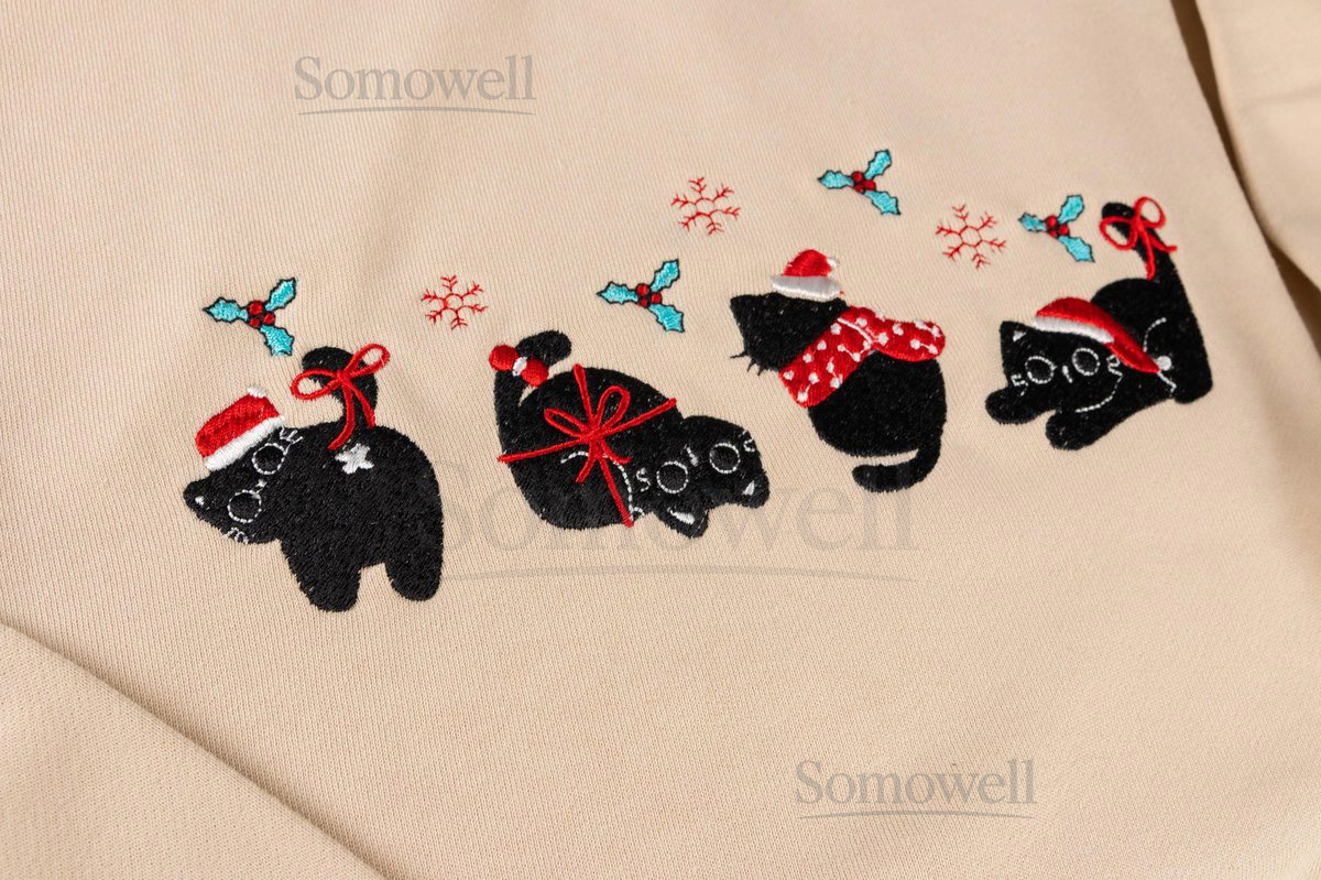 Embroidered Christmas Cat Sweatshirt 100 Cotton Crew Neck_63
