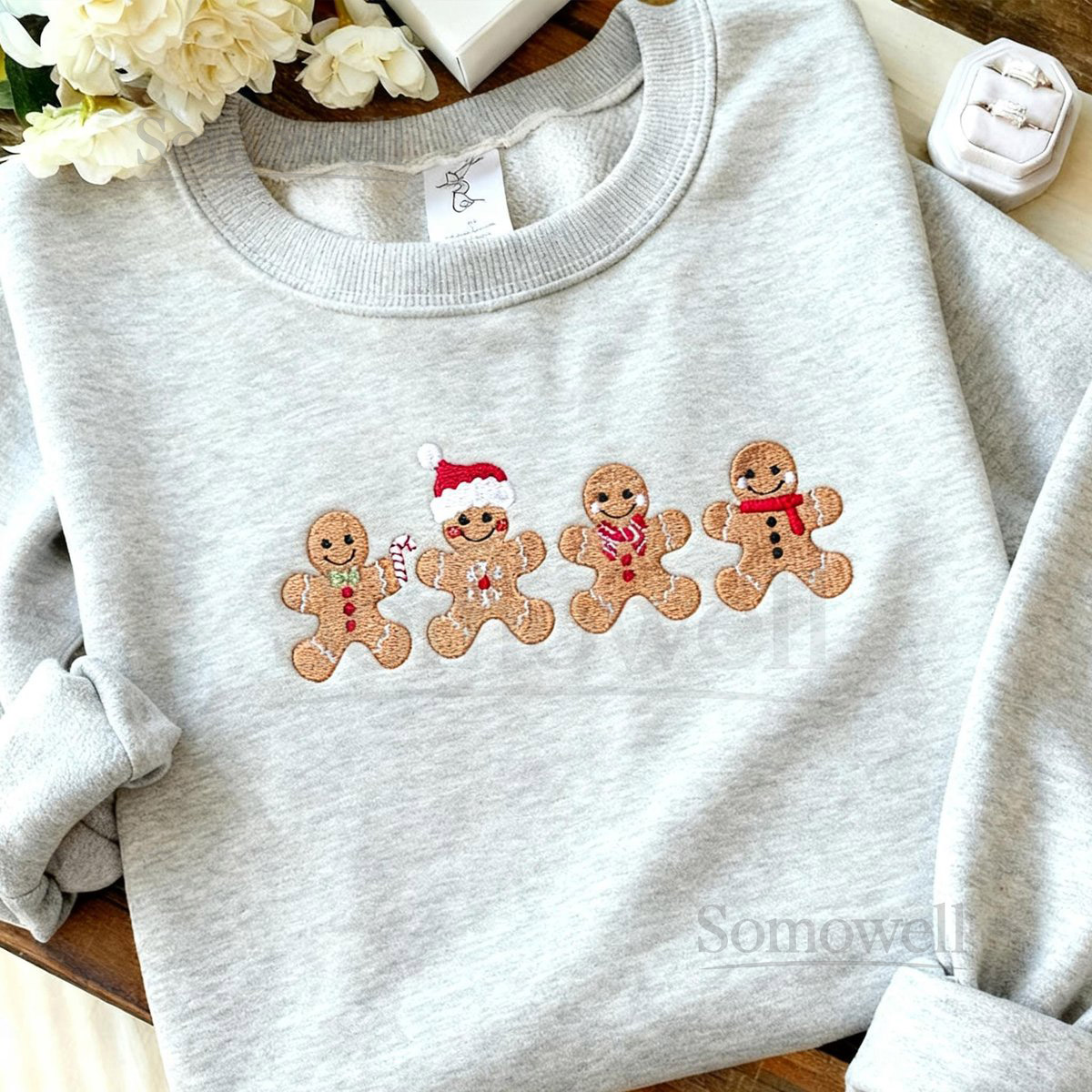 Embroidered Cute Gingerbread Cookies Sweatshirt Womens Christmas Sweatshirt Merry ChristmasFestive Unisex Winter SweaterChristmas gifts_72