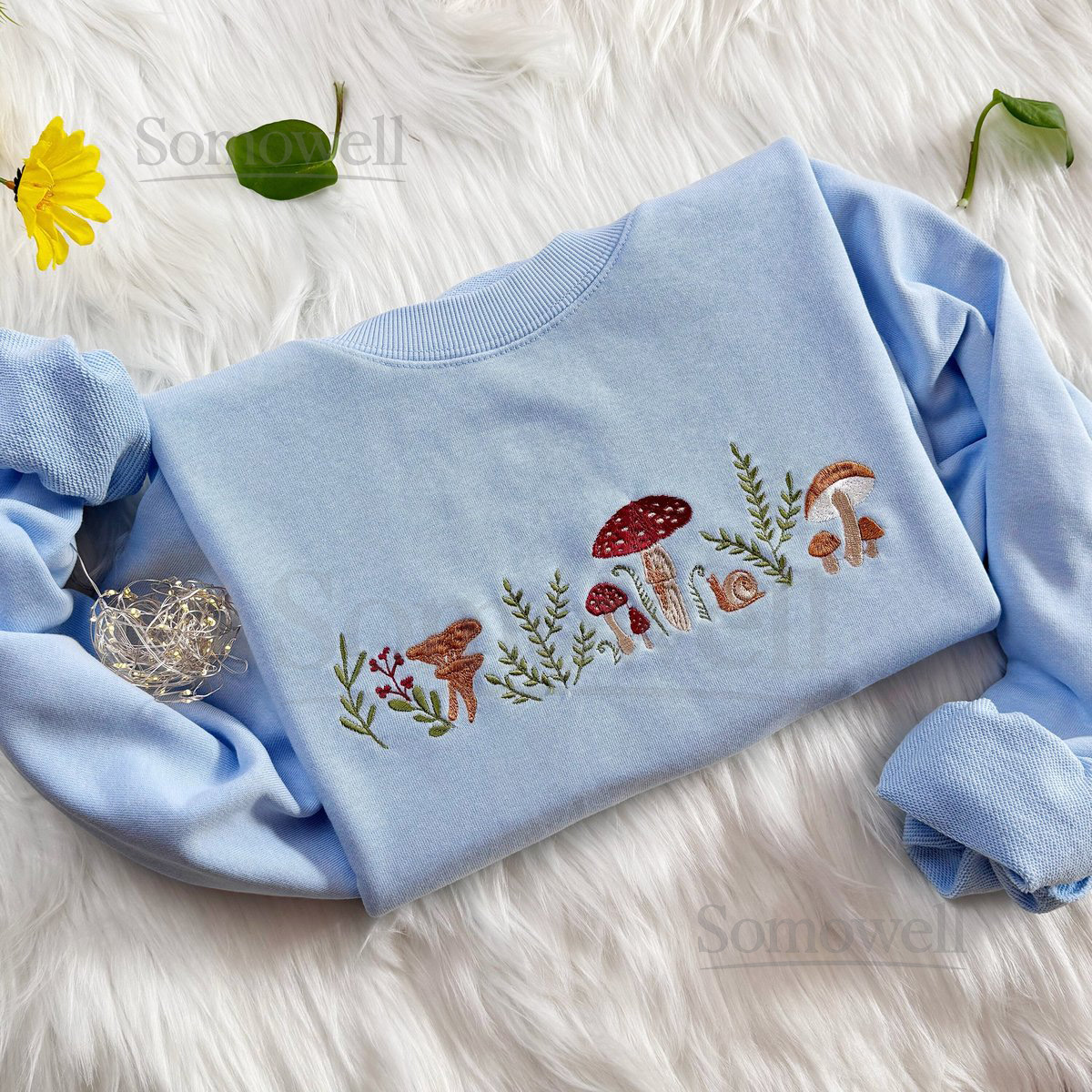 Embroidered Mushroom Sweatshirt Cottagecore Botany Crewneck 100 Cotton Unisex Sweatshirt_90