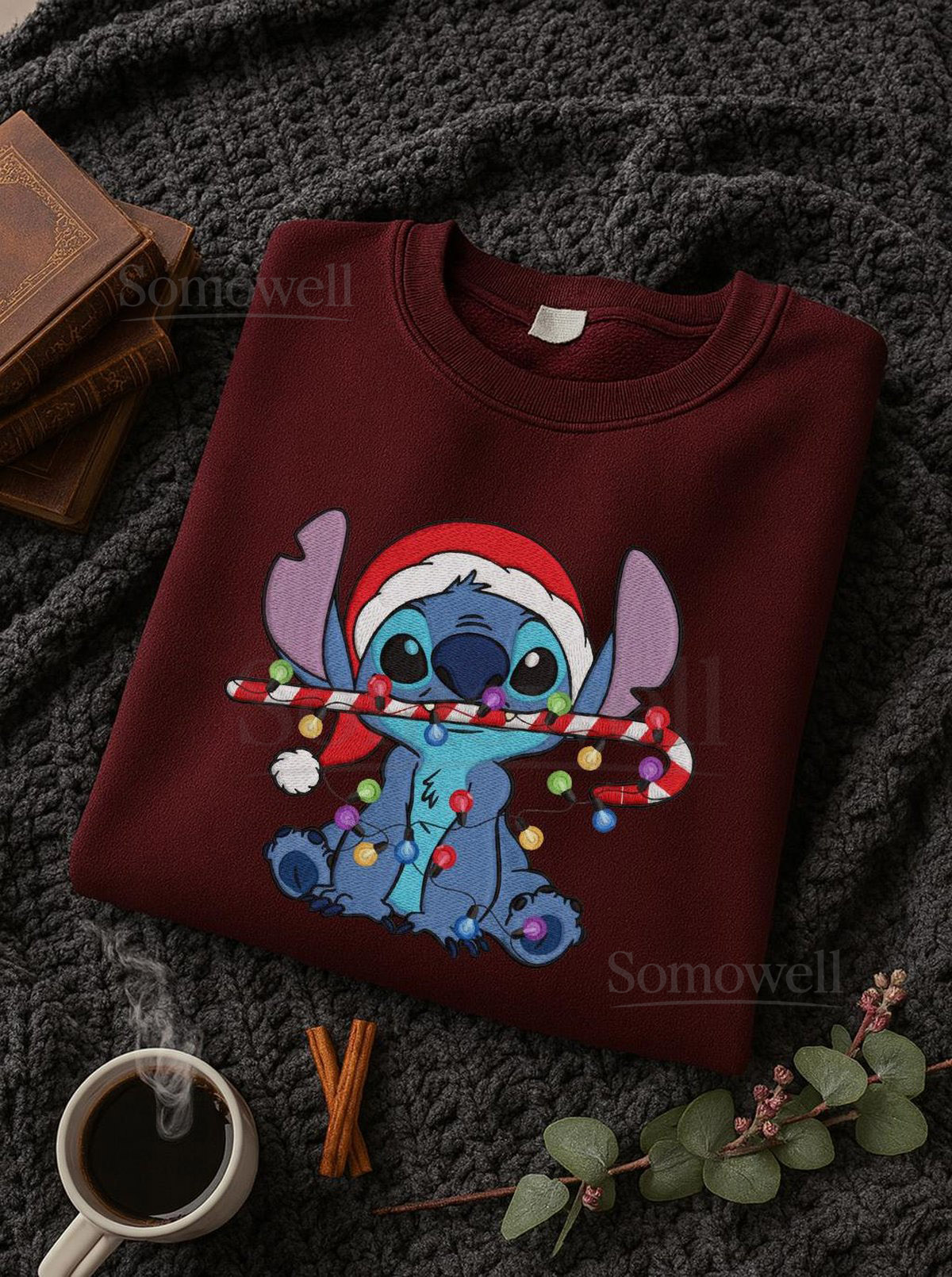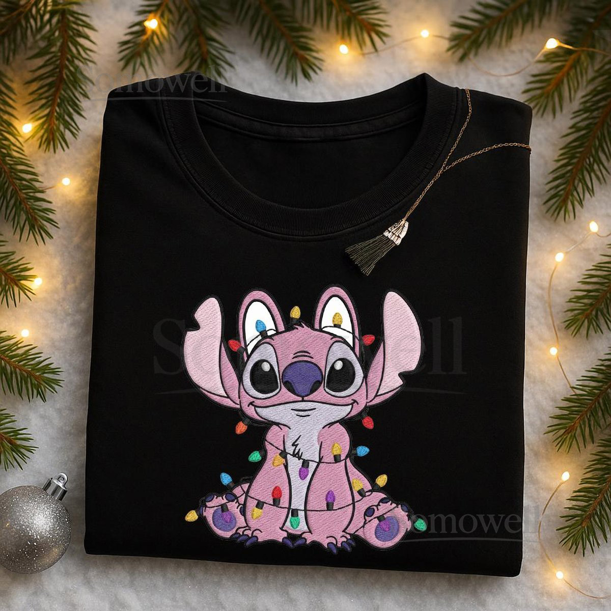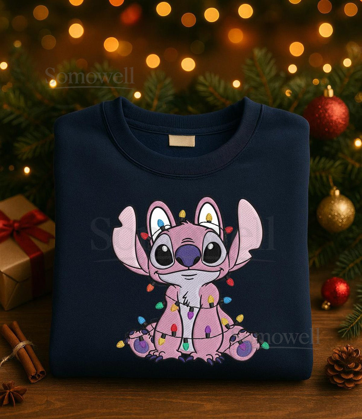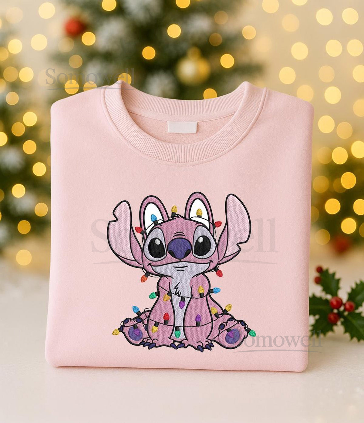 EMBROIDERED Stitch Angel Christmas Sweatshirt Disney Matching Holiday Sweater Cozy Xmas Lights Crewneck Cousin Disney Shirt ESD981-982_99