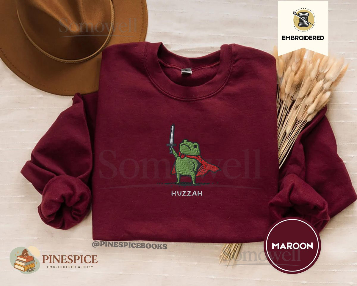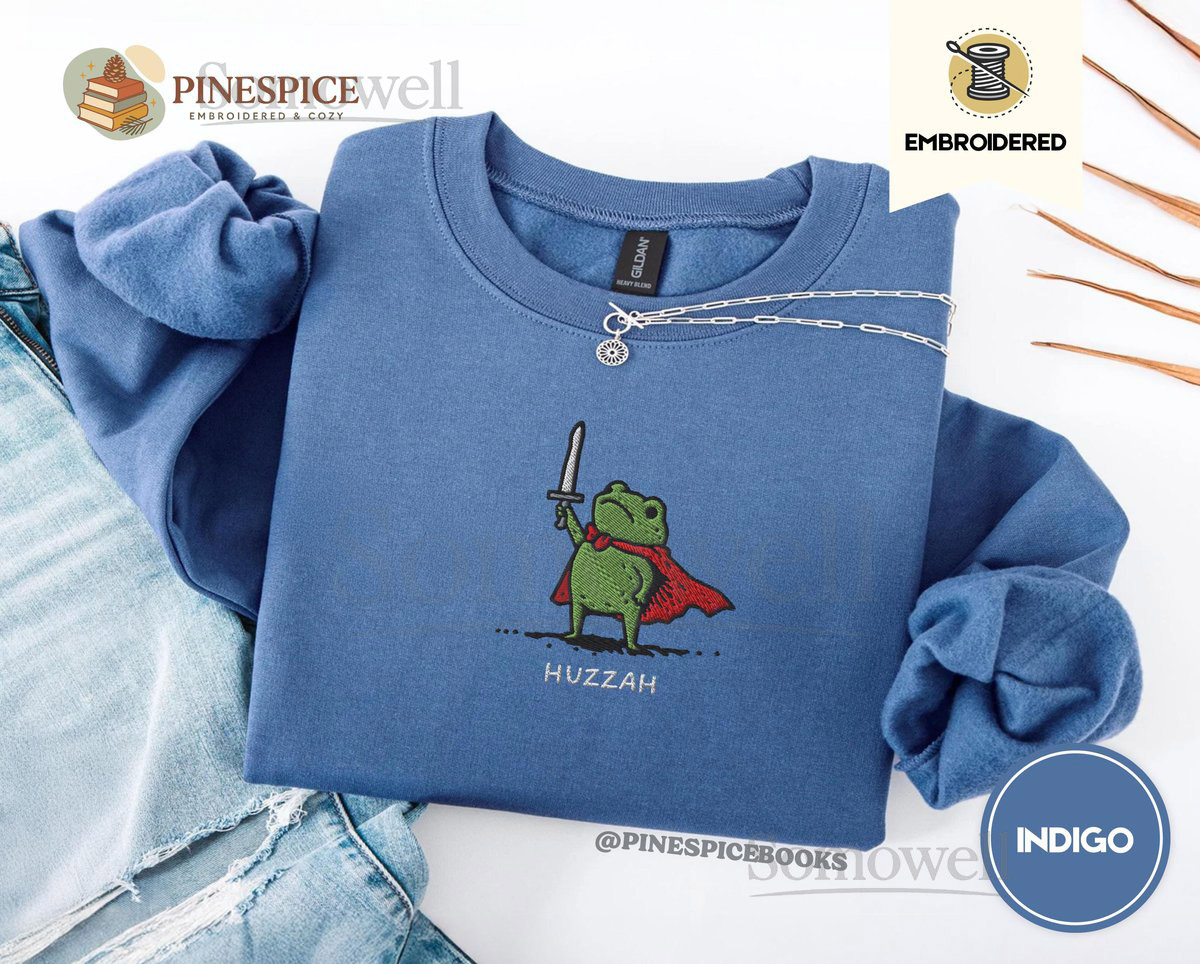 Huzzah Frog Sweatshirt Embroidered Gildan 18000 Funny DnD Pullover Renaissance Faire Frog Crewneck Medieval Fantasy Gamer Gift_109