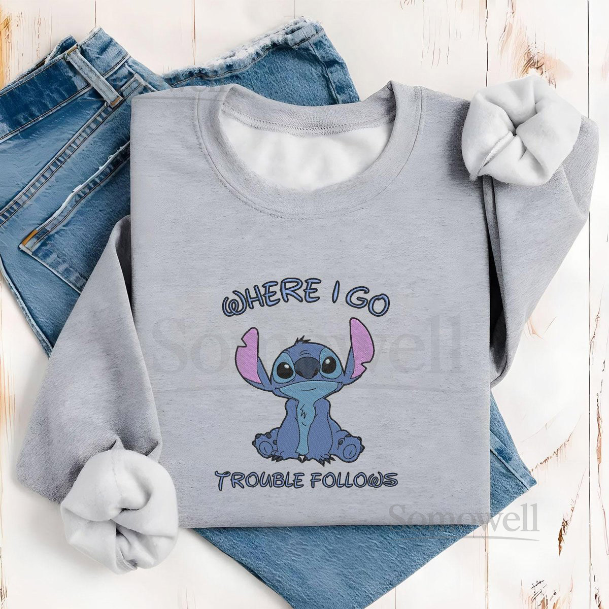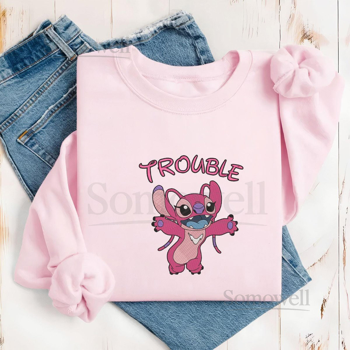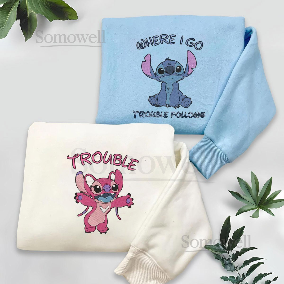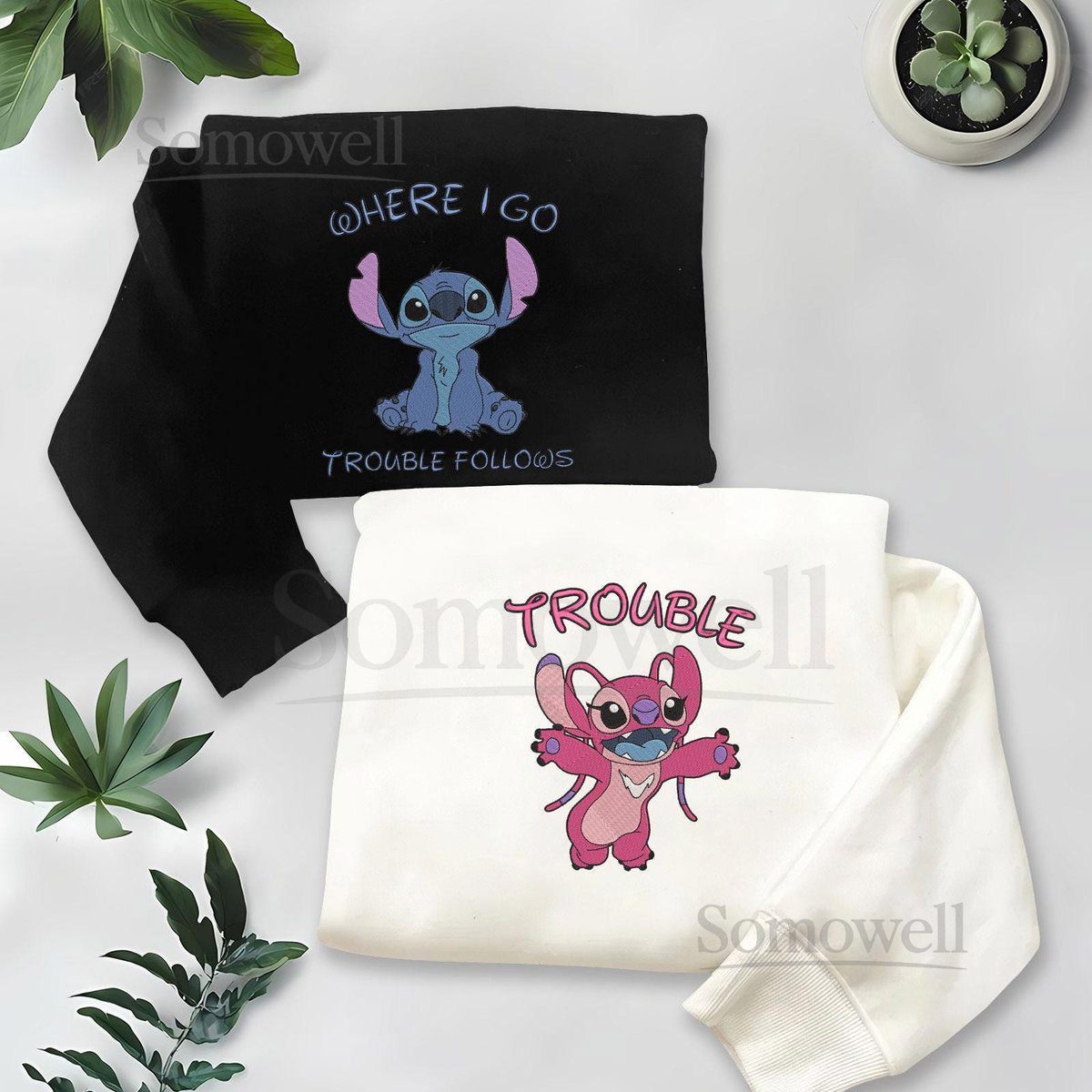 Stitch Angel Couple Embroidered Sweatshirt Lilo And Stitch Embroidery Hoodie Disney Cartoon Shirt For Women MenValentine Couple Gift_154