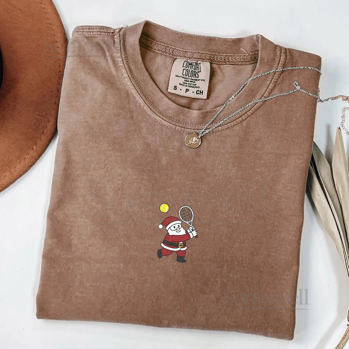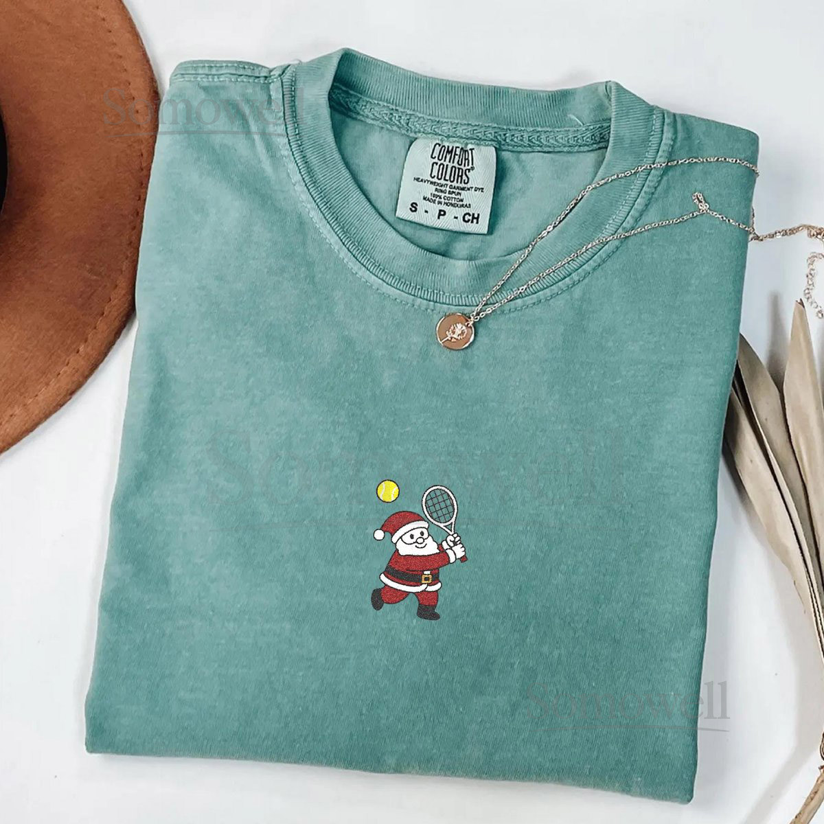 Santa Claus Comfort Colors Shirt Tennis Embroidered Funny Christmas Sweatshirt Xmas Gift_144