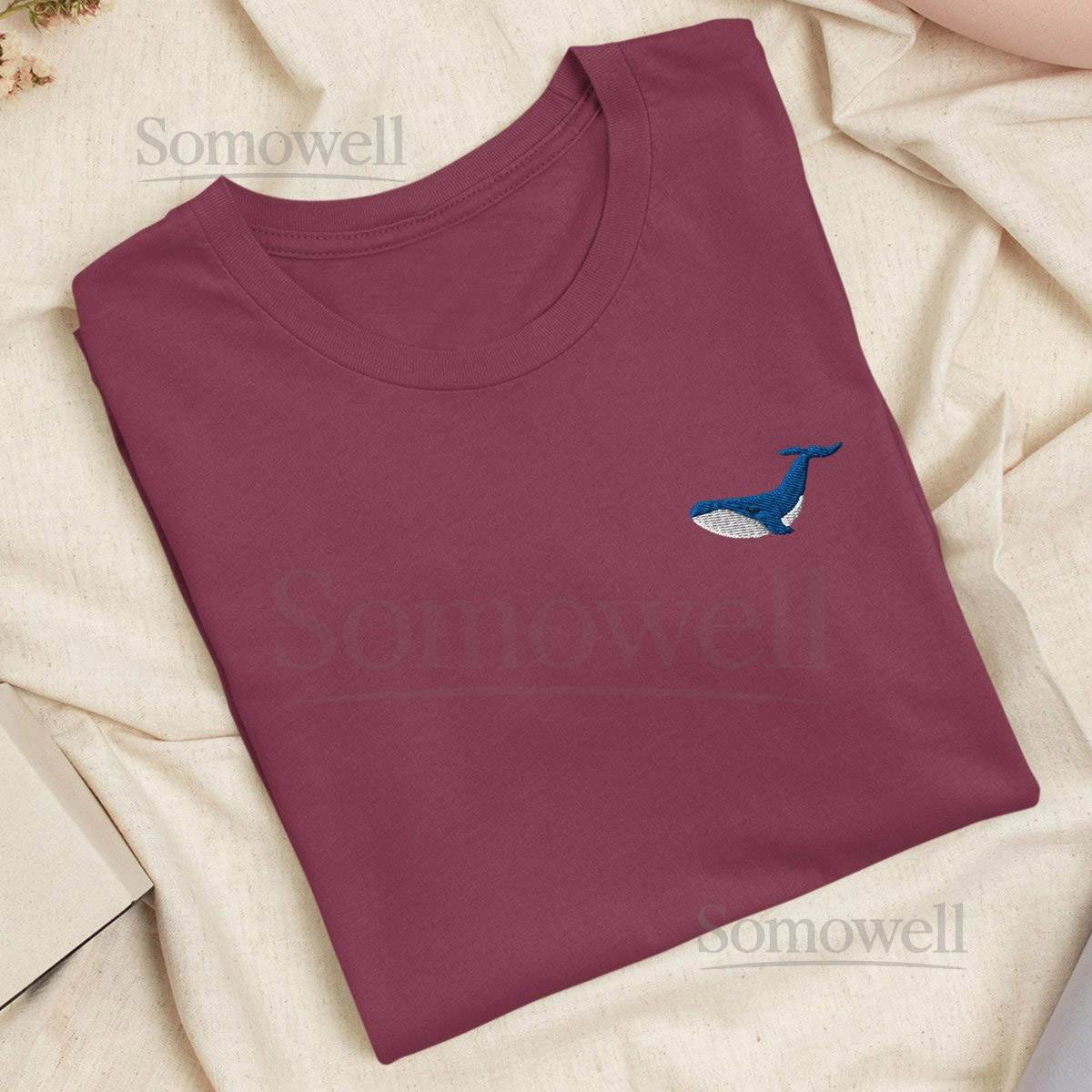 Blue Whale Embroidered T-Shirt Lightweight Cotton Unisex Fit_6