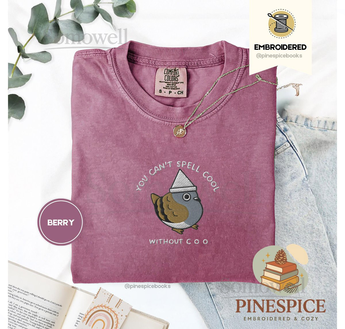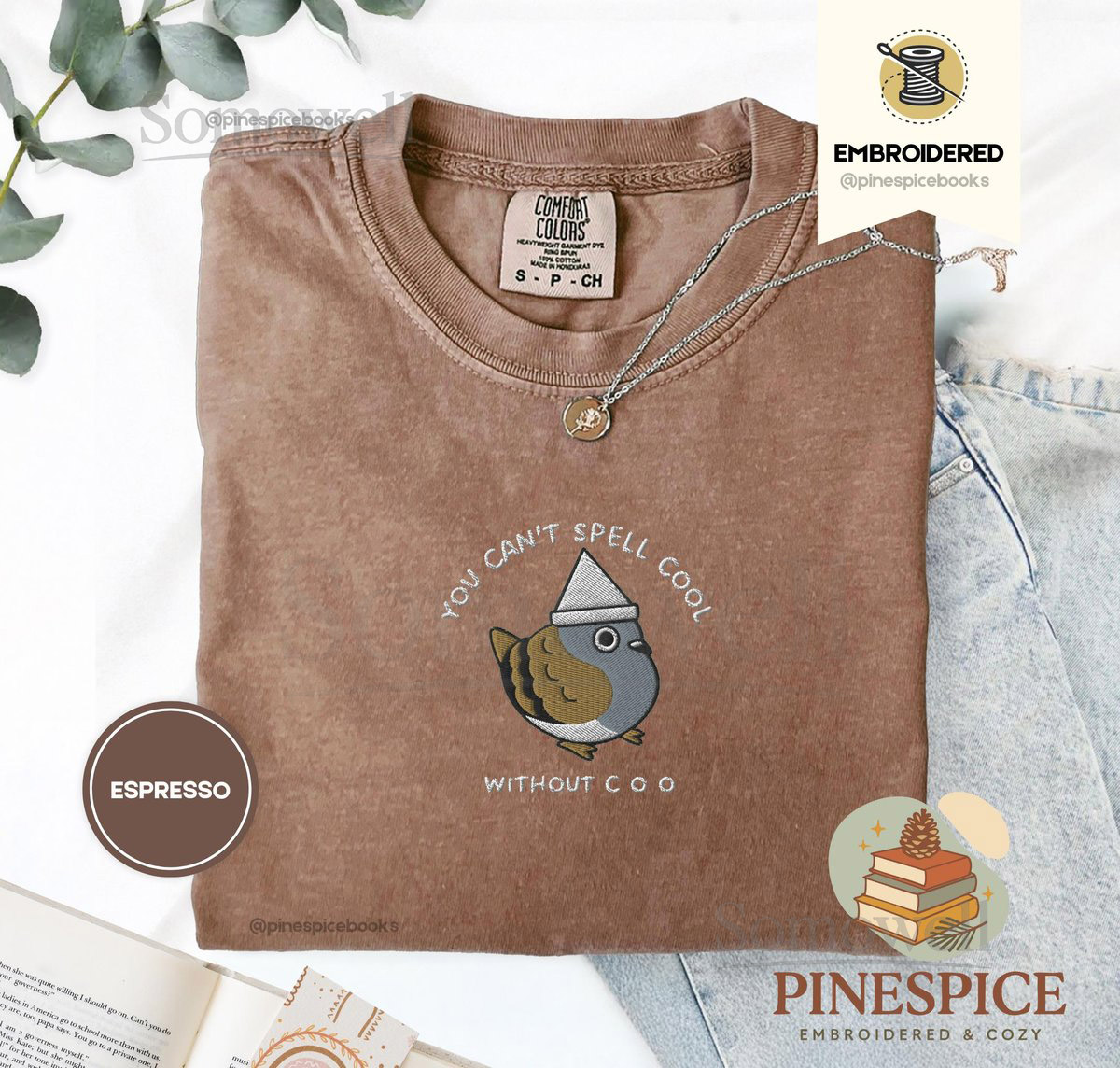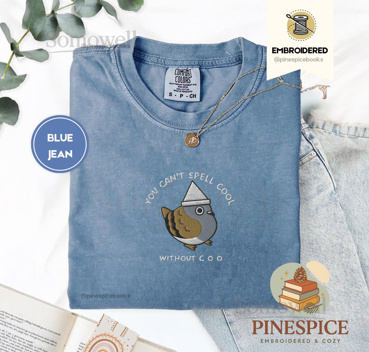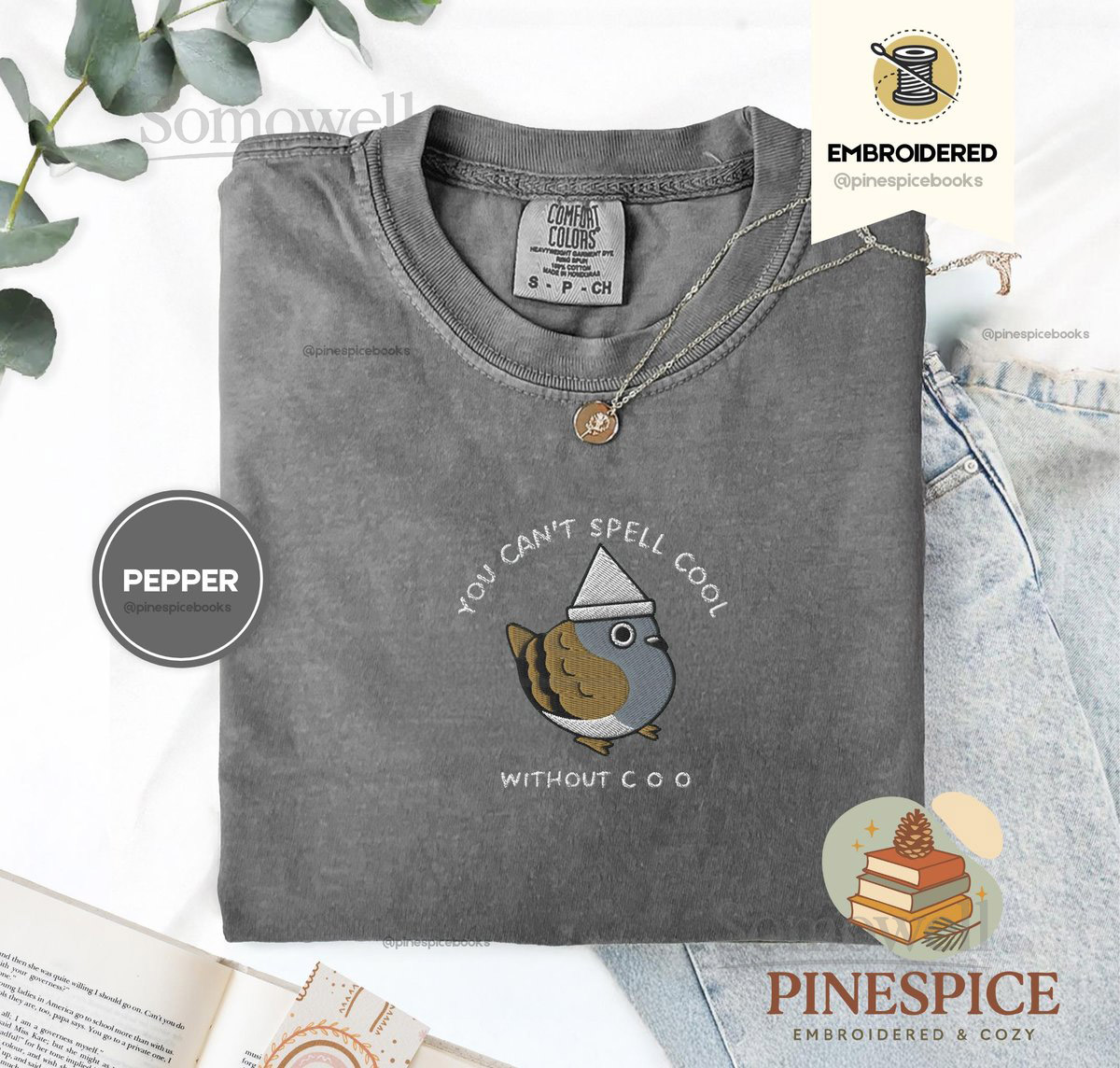 Cant Spell Cool Without Coo Tee Embroidered Pigeon Shirt Funny Bird Lover T-Shirt Comfort Colors 1717 Urban Birdwatcher Tee_11