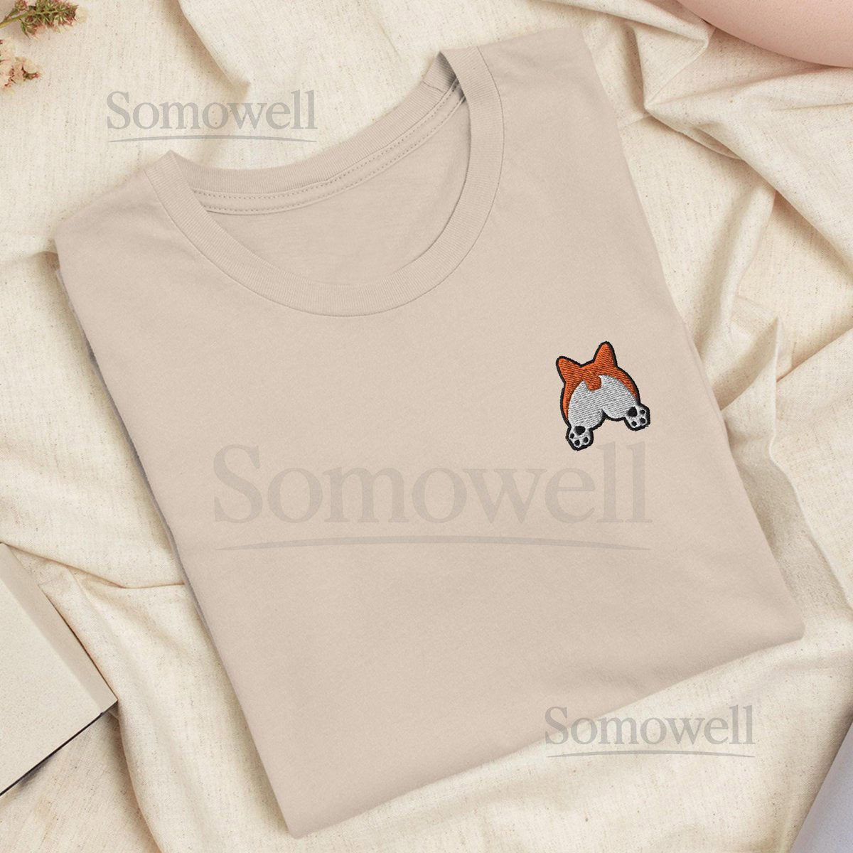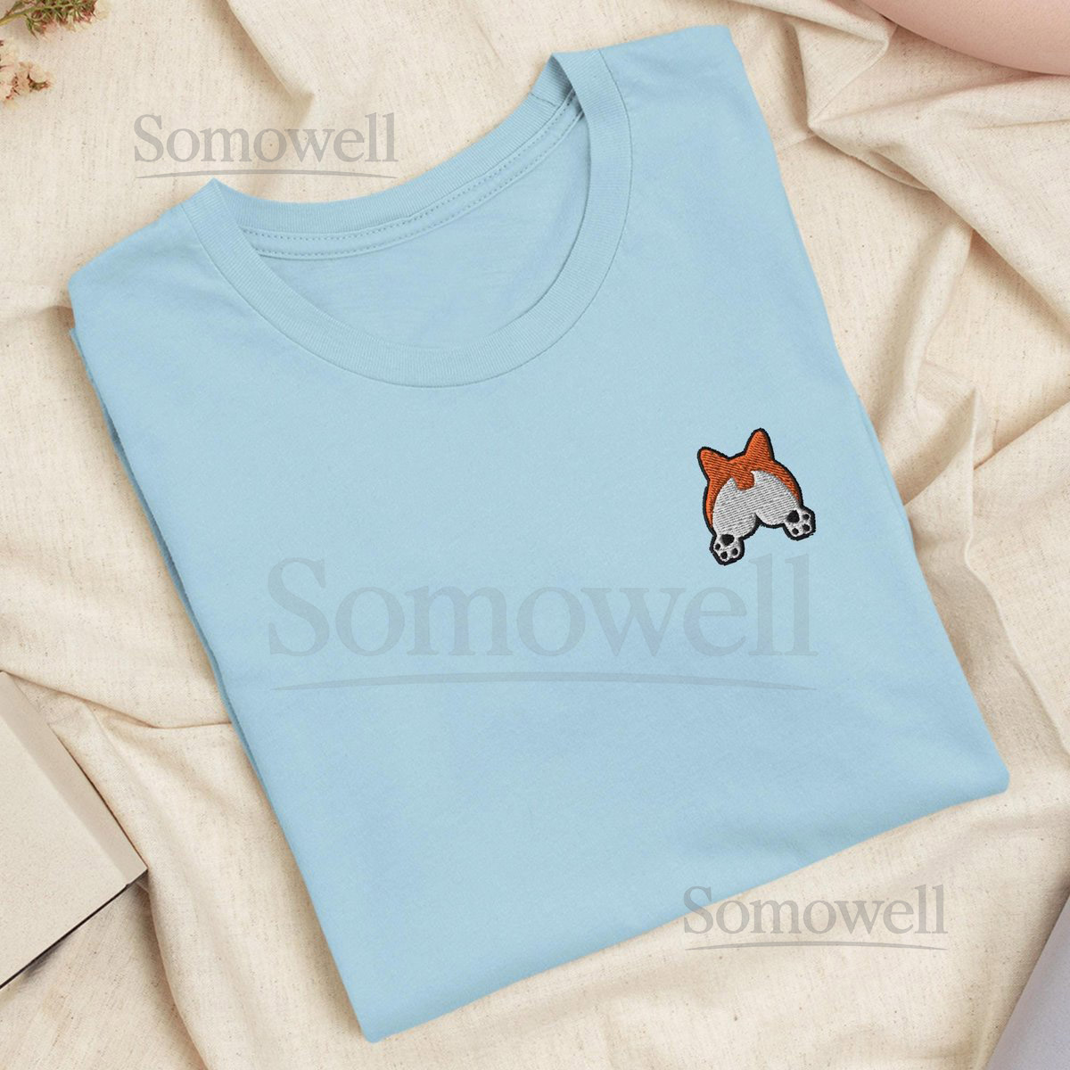 Corgi Booty Embroidered T-Shirt Lightweight Cotton Unisex Fit_24