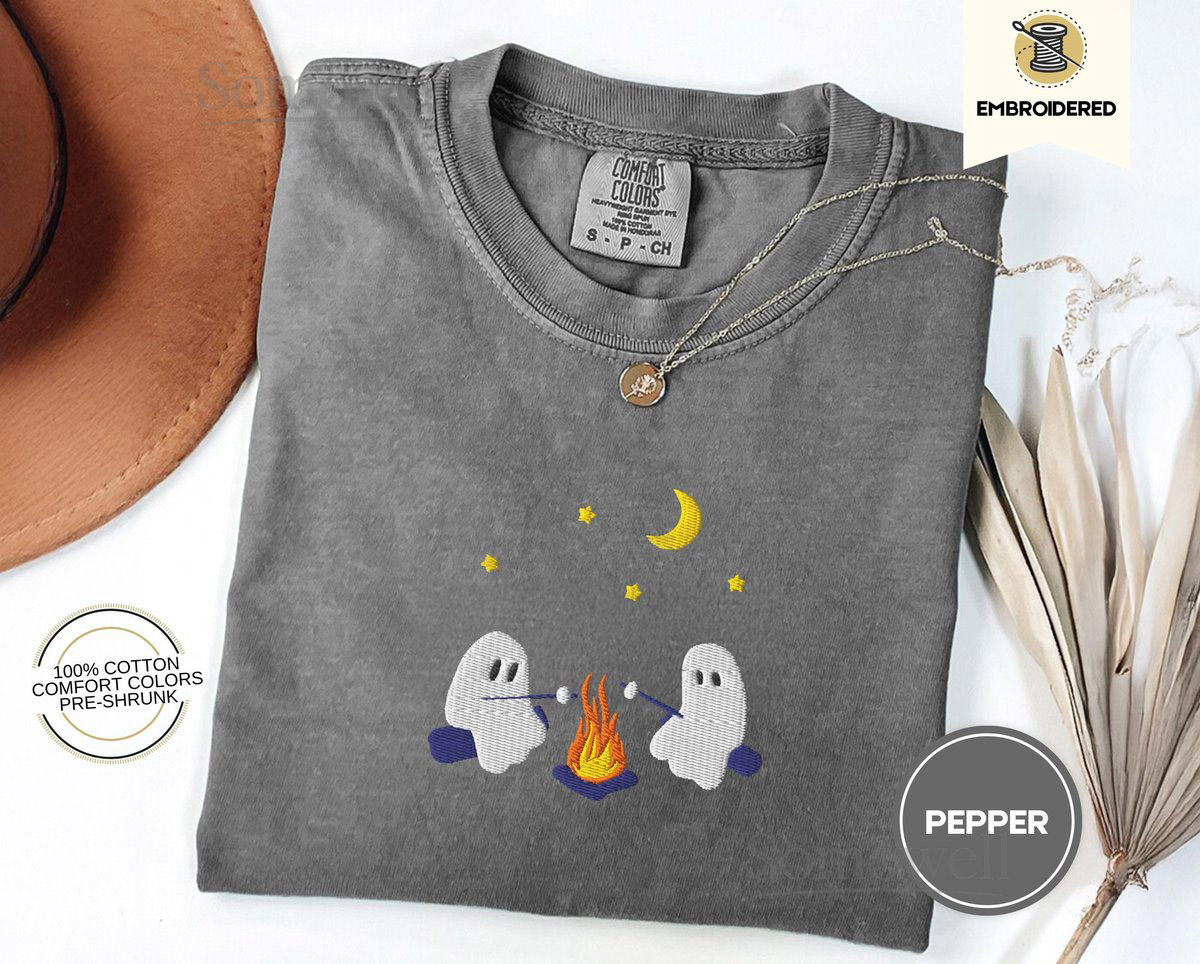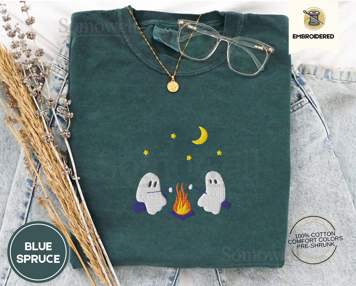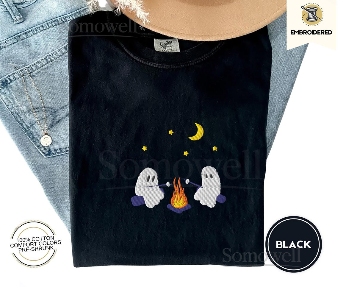 Cute Ghosts Camping Embroidered Comfort Colors Tee Spooky Season Outdoors Gifts Halloween Vintage Embroidery Tshirt_28
