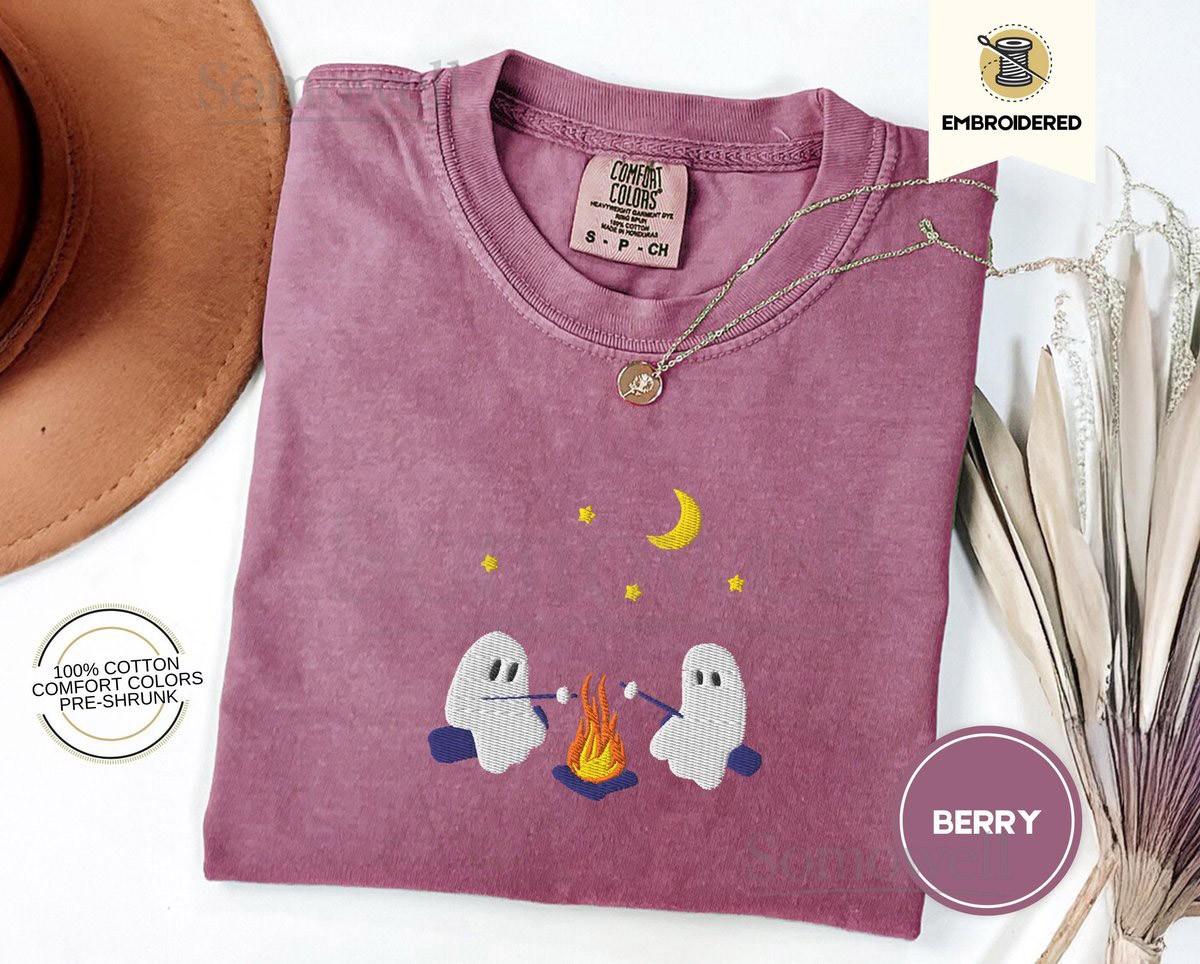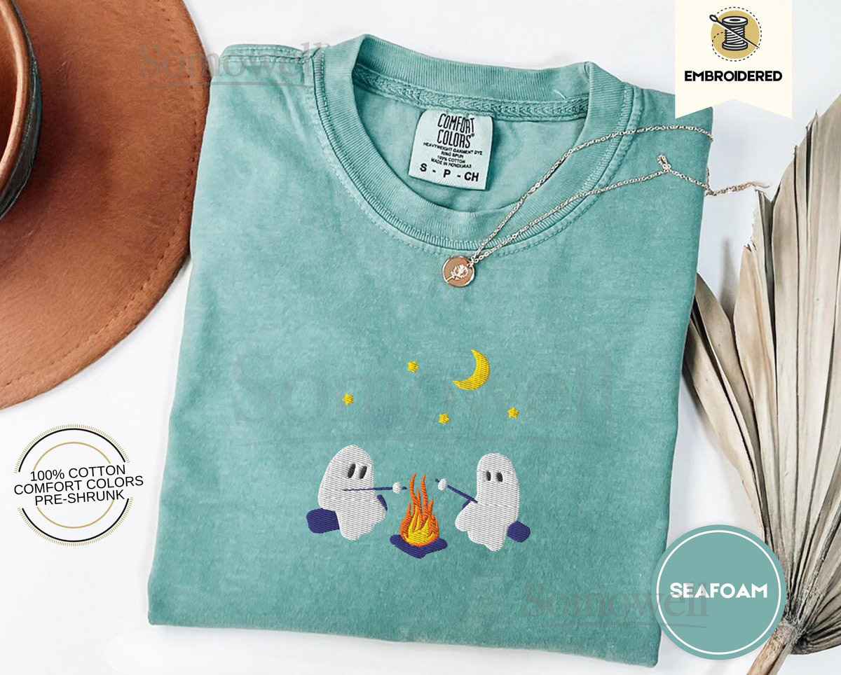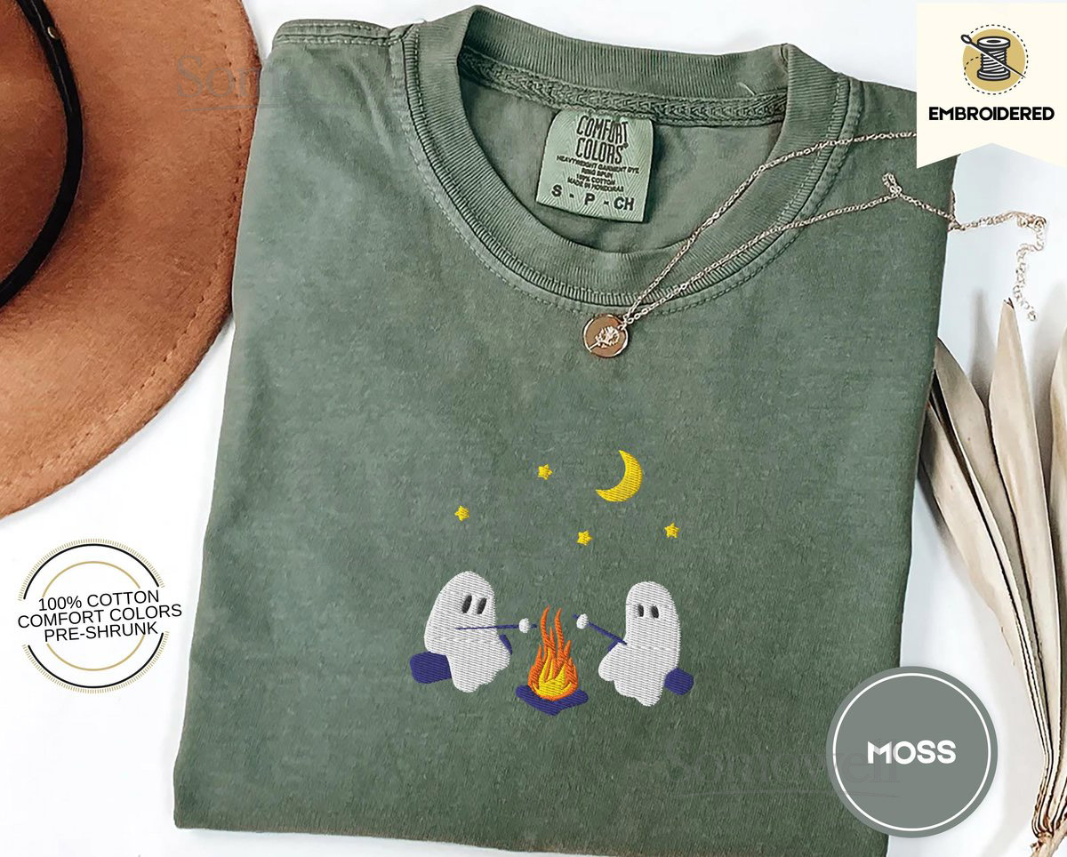 Cute Ghosts Camping Embroidered Comfort Colors Tee Spooky Season Outdoors Gifts Halloween Vintage Embroidery Tshirt_28
