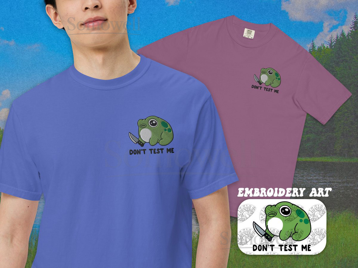 Don’t Test Me Frog Embroidery T-Shirt Funny Frog Embroidered Shirt Frog Meme garment-dyed heavyweight t-shirt_36