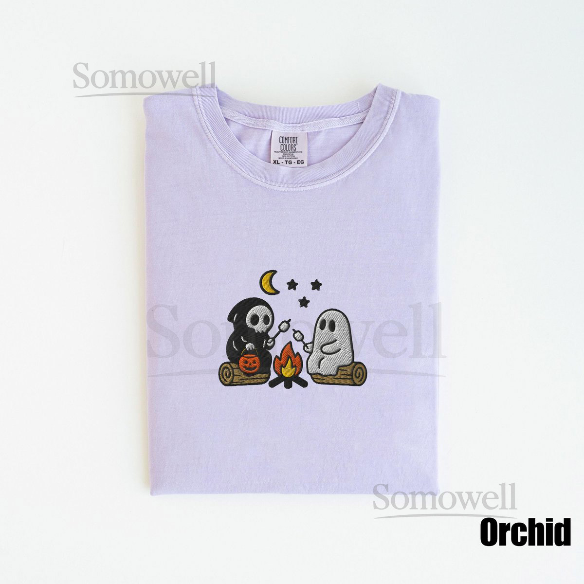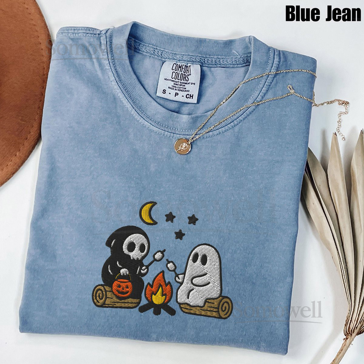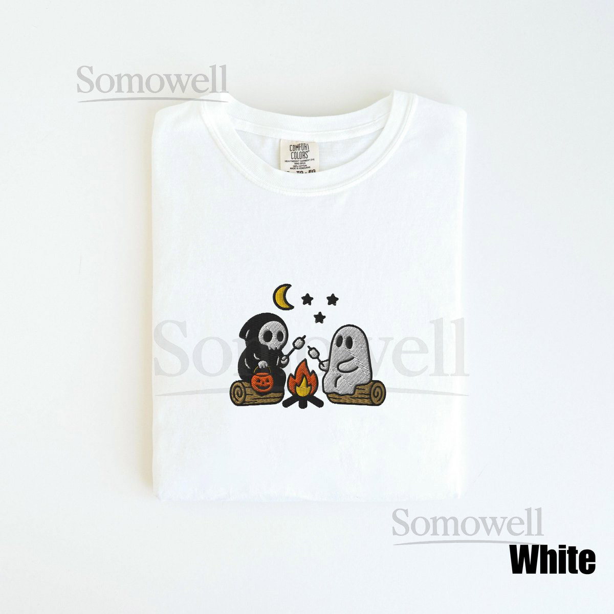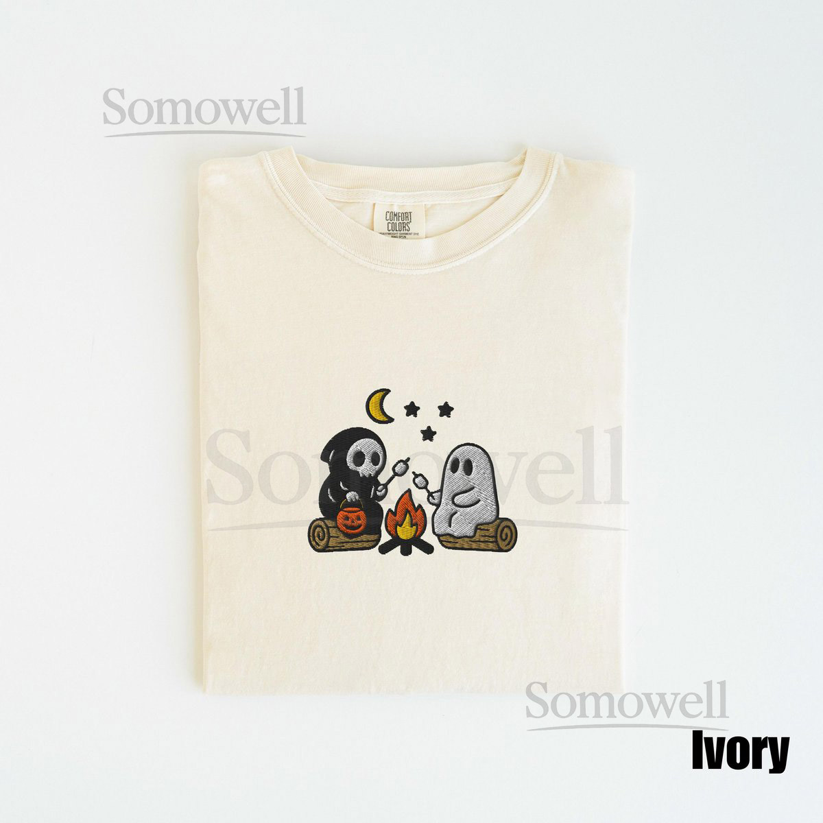 Embroidered Cute Ghosts Camping Comfort Colors Camping Shirt Spooky Season Outdoors Gifts Halloween Shirt_61