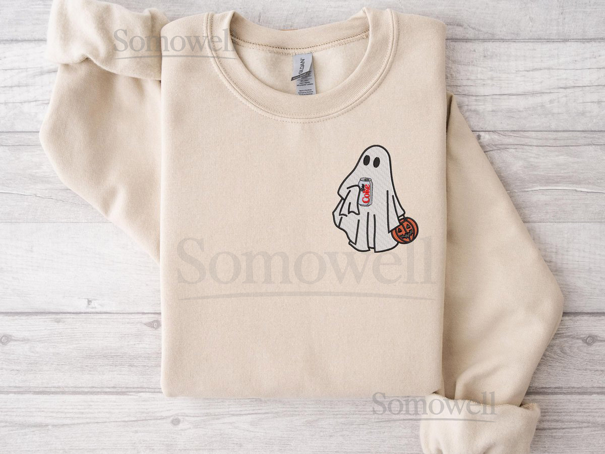 EMBROIDERED Halloween Ghost Embroidered Ghost Diet Coke Embroidered Halloween Hoodie Embroidery GhostGhost Diet CokeHalloween Diet Coke_74