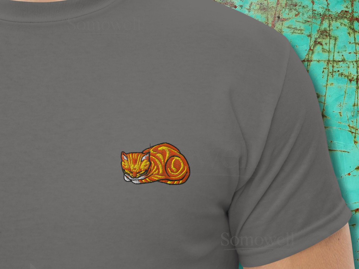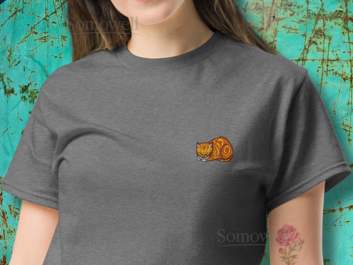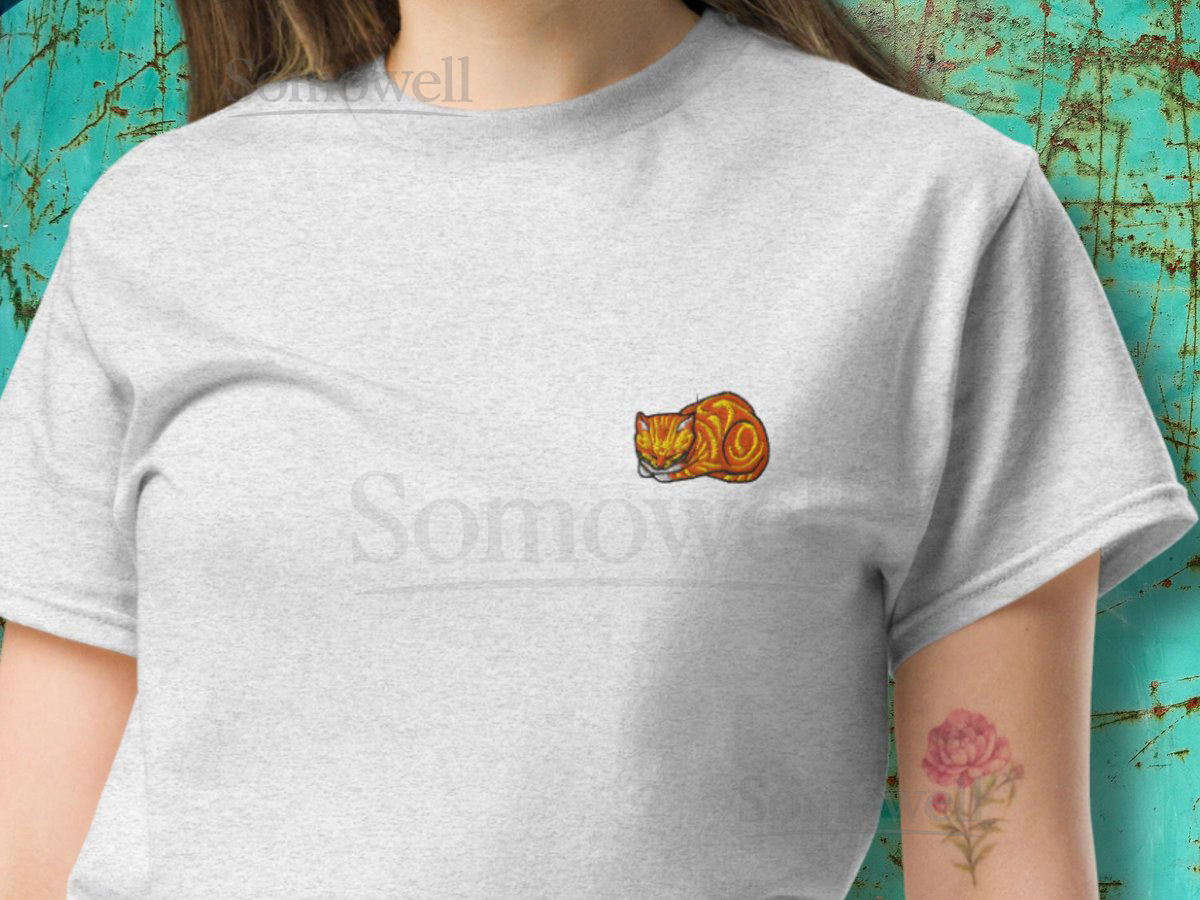 Embroidered Orange Tabby Cat T-Shirt Minimalist Pocket Tee_85