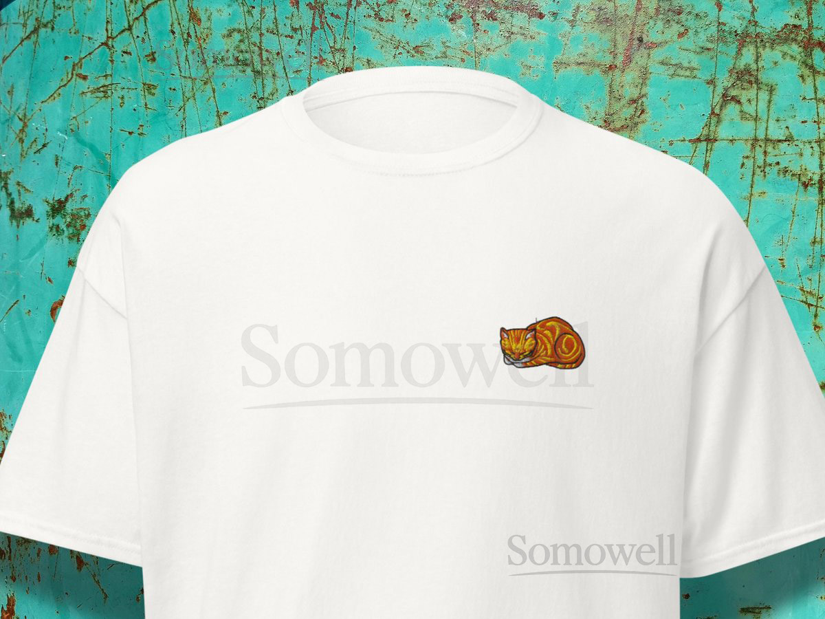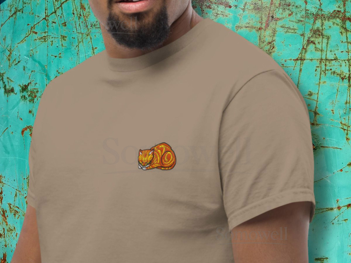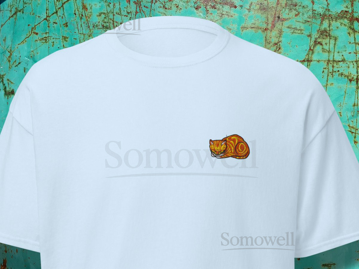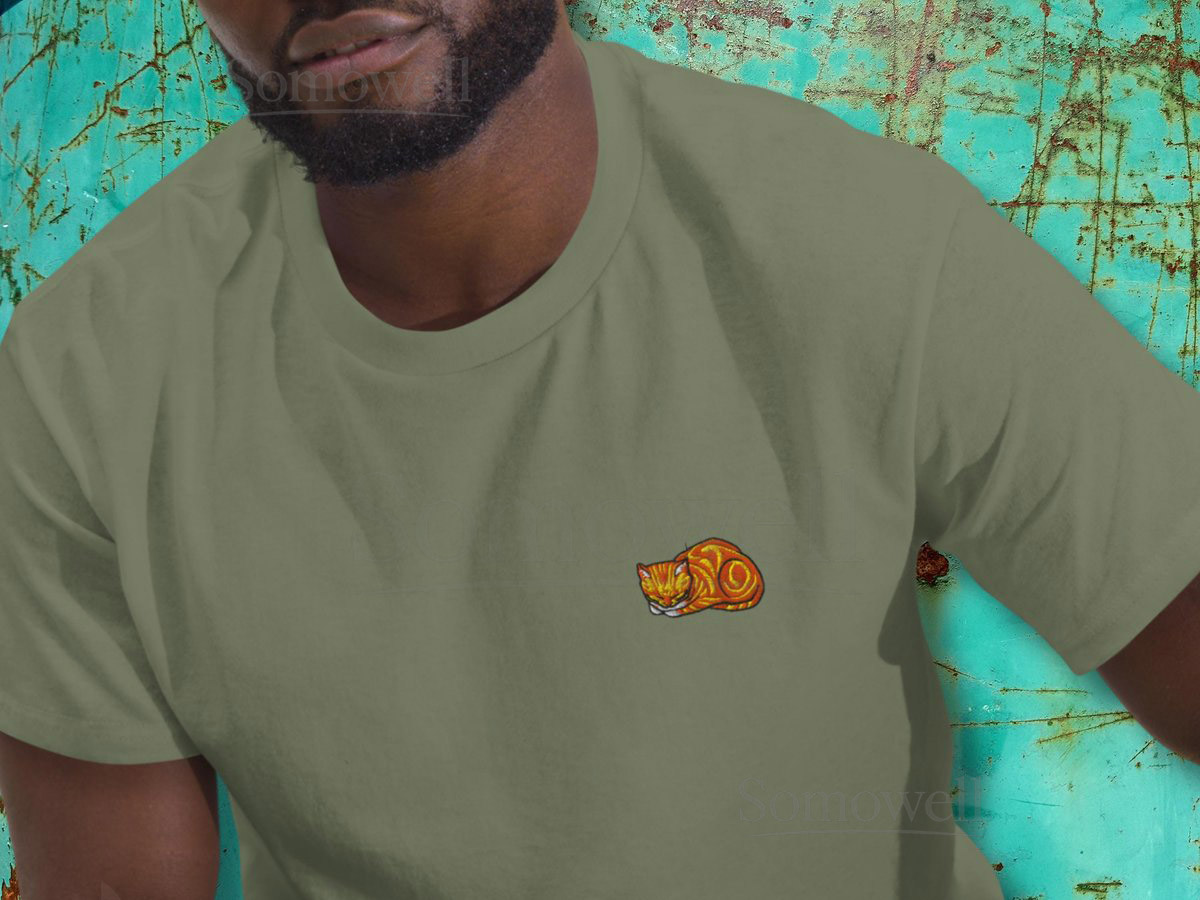 Embroidered Orange Tabby Cat T-Shirt Minimalist Pocket Tee_85