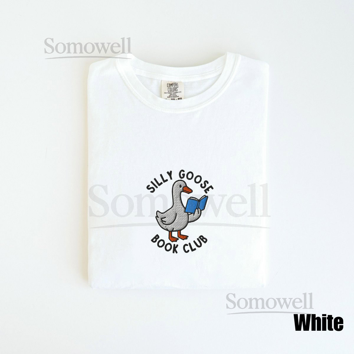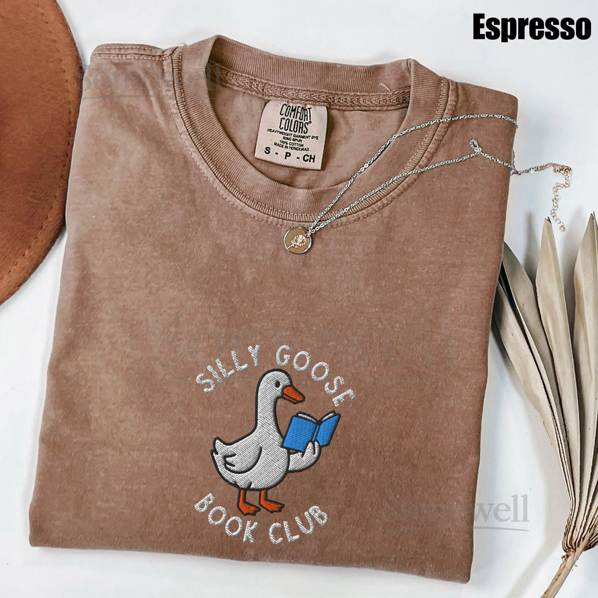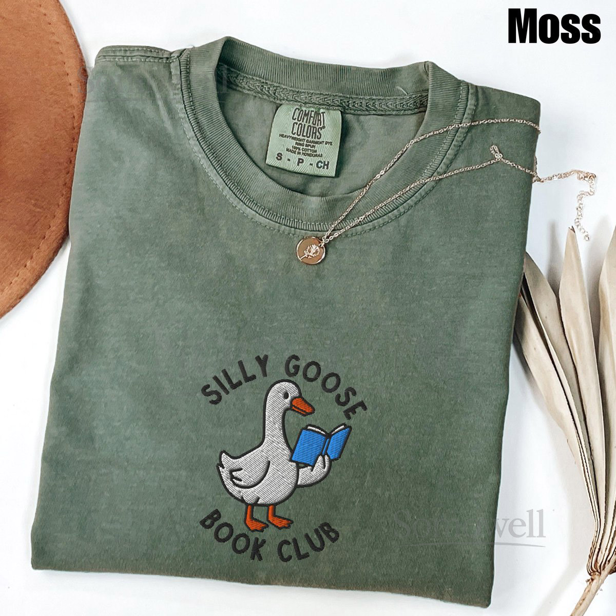 Embroidered Silly Goose Book Club Comfort Colors Shirt Funny Reader T-Shirt Book Lover Gift Tee Cozy Goose Reading Graphic Shirt_93