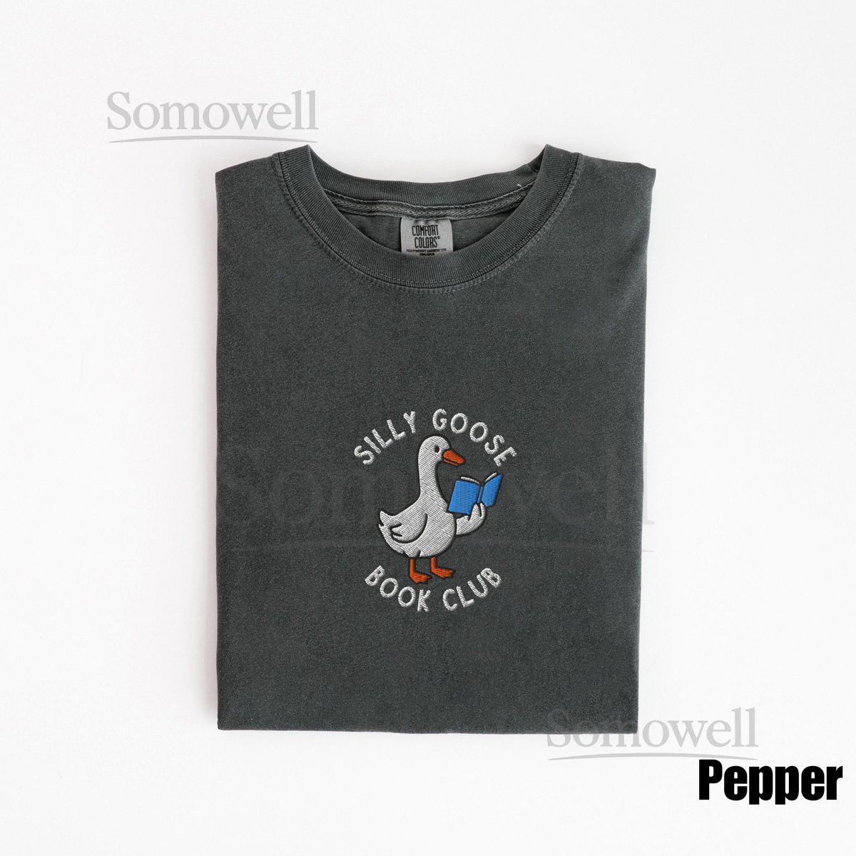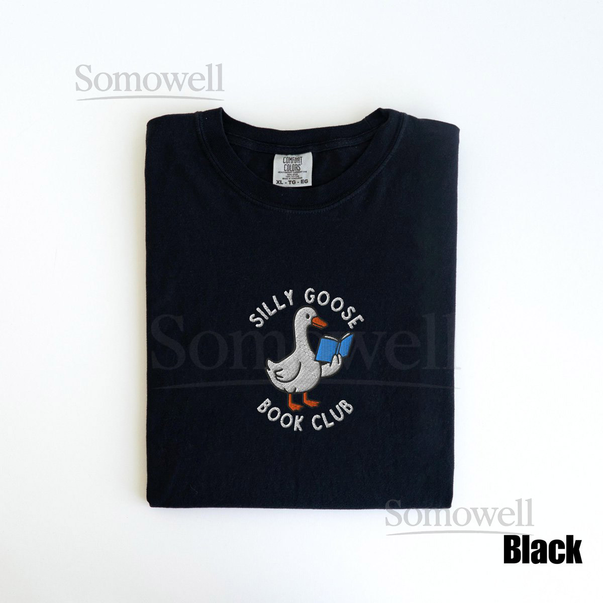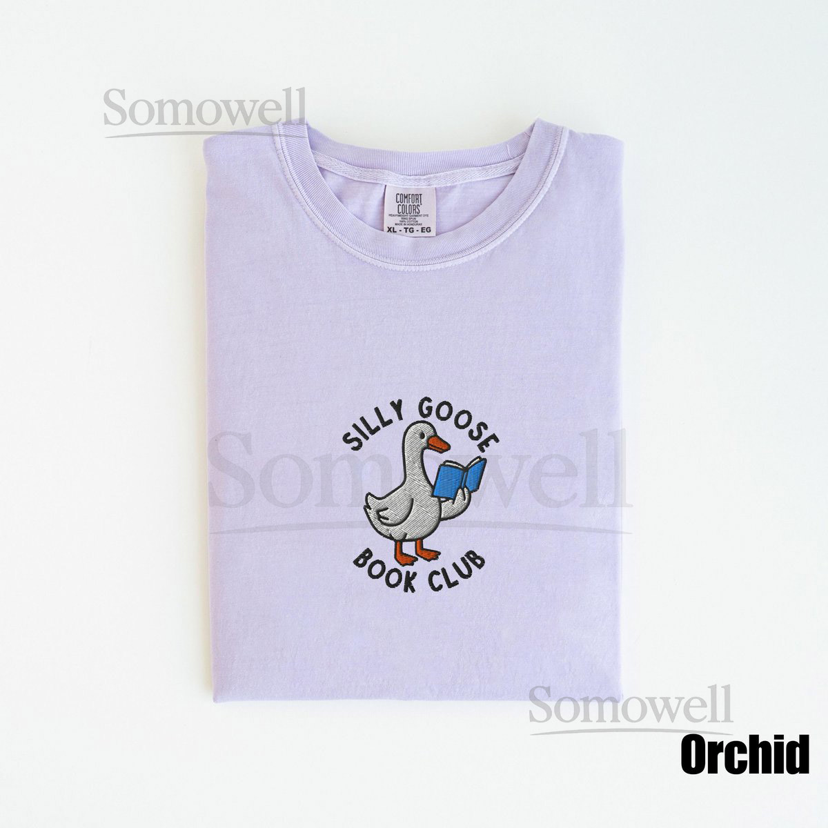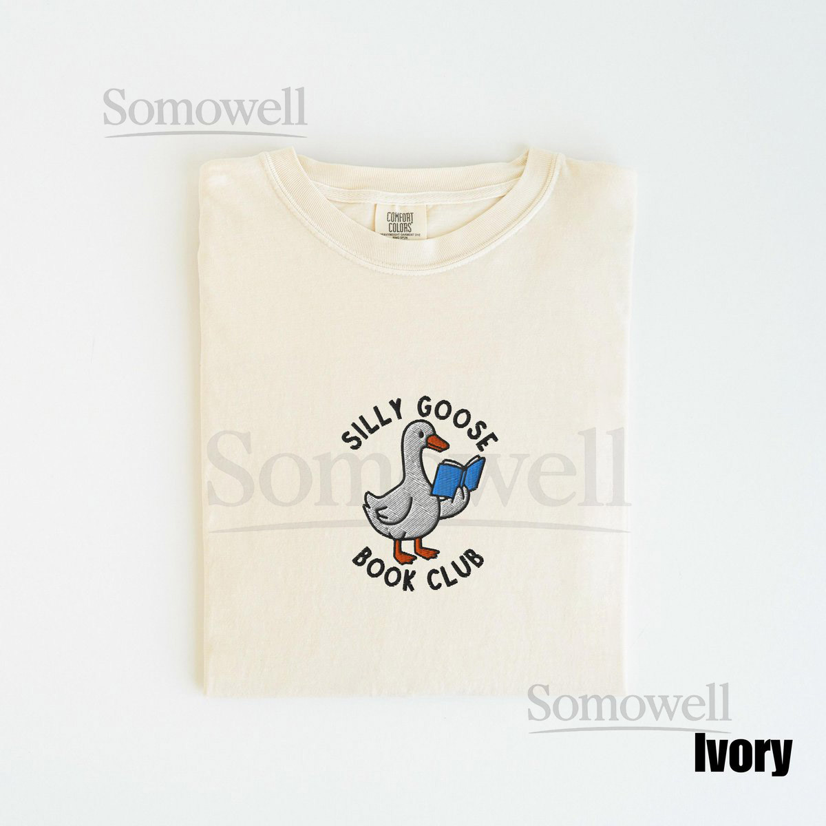 Embroidered Silly Goose Book Club Comfort Colors Shirt Funny Reader T-Shirt Book Lover Gift Tee Cozy Goose Reading Graphic Shirt_93