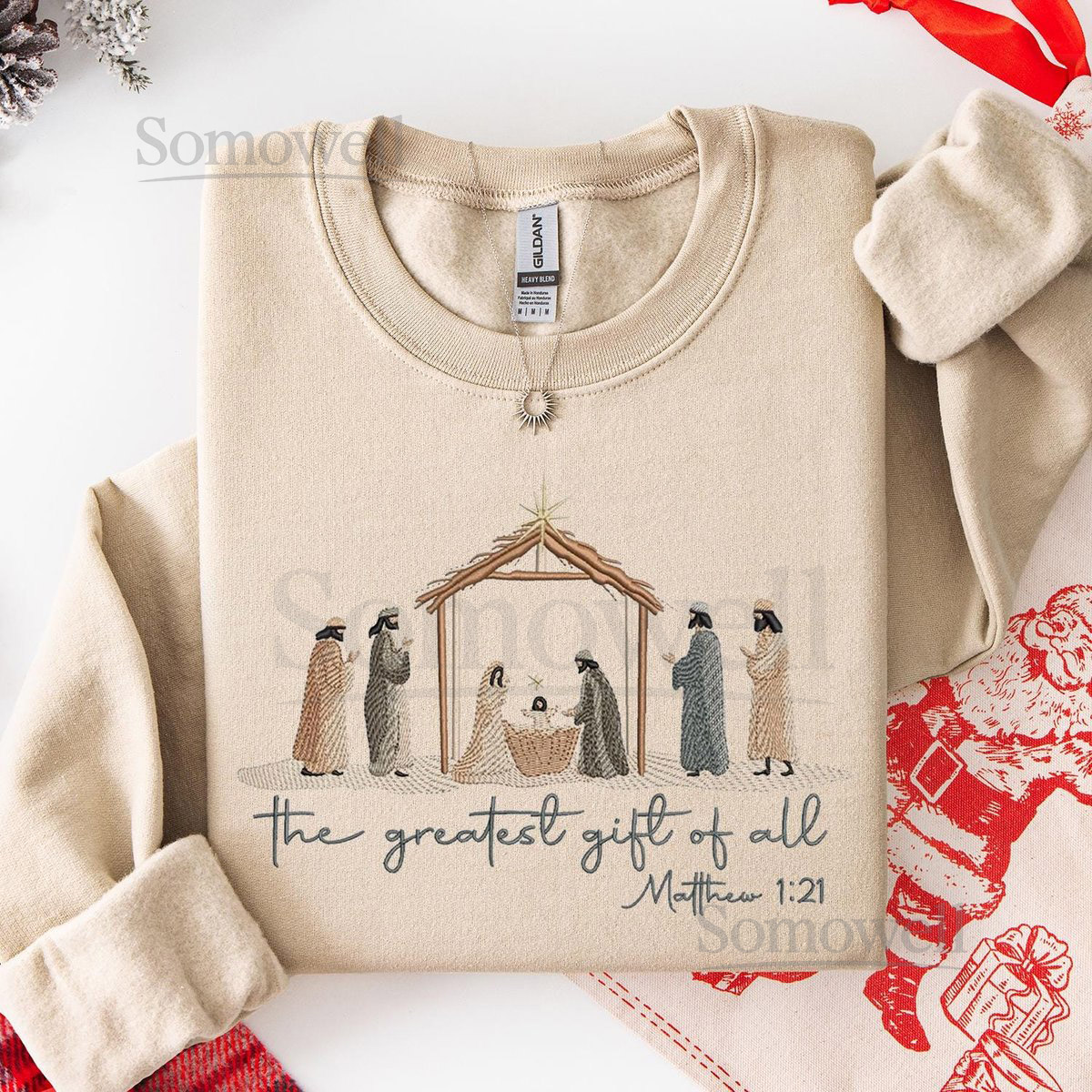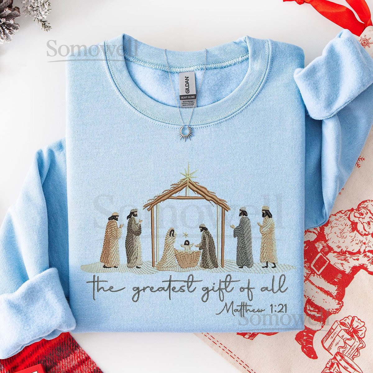EMBROIDERED The Greatest Gift For All Shirt Bible Verse Christian Christmas Shirt Jesus Embroidery Shirt EMBROIDERED Christian Gift_101