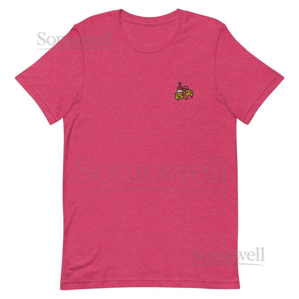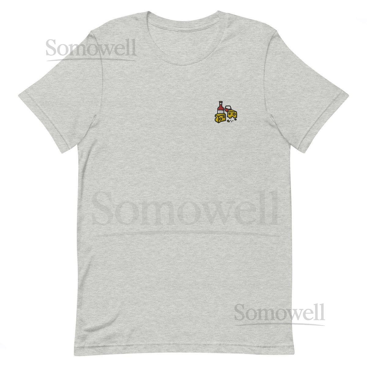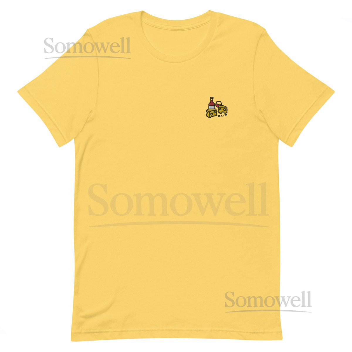 Embroidered Wine and Cheese T-Shirt Unisex Cotton Tee_106