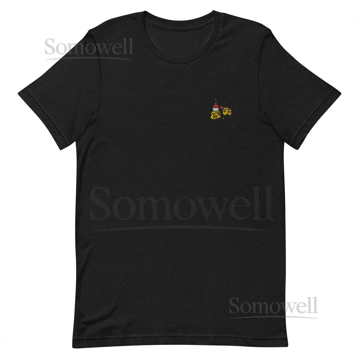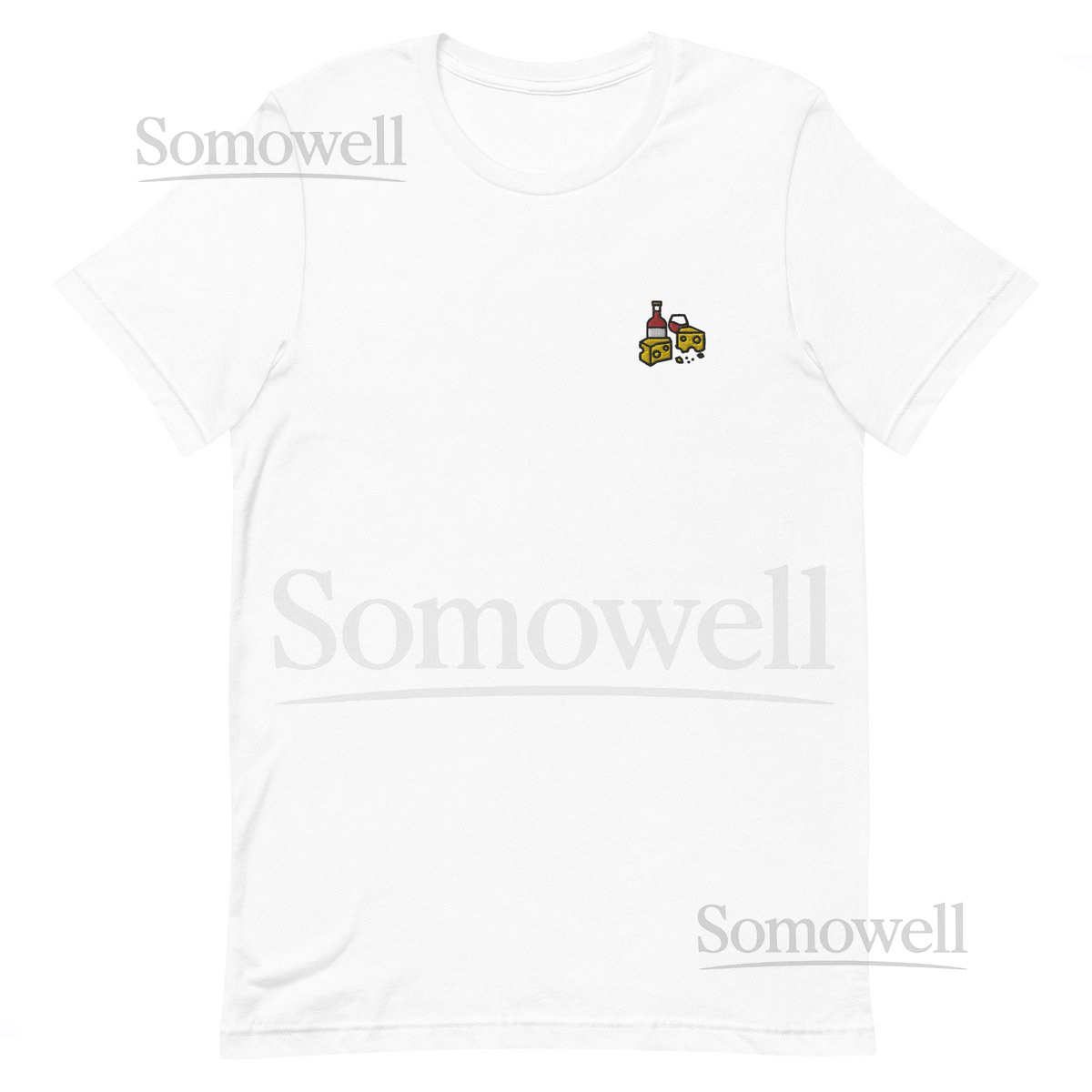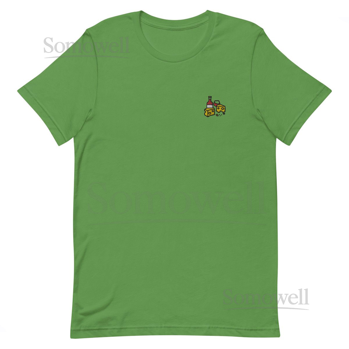 Embroidered Wine and Cheese T-Shirt Unisex Cotton Tee_106