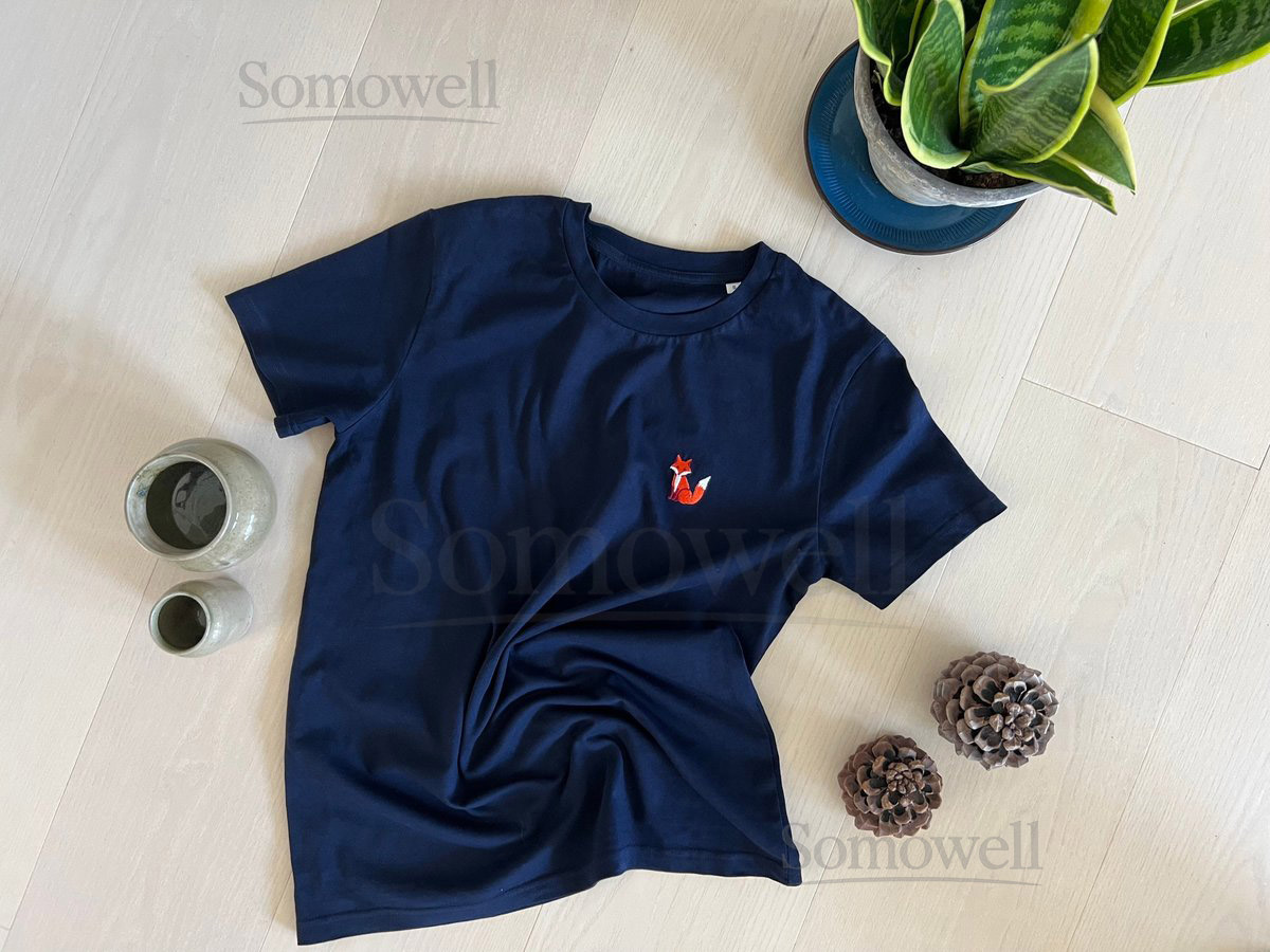 Fox Organic Embroidered Unisex T-Shirt Minimal Animal Design_116