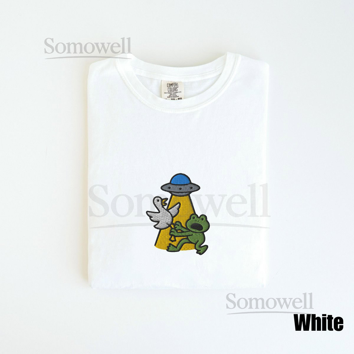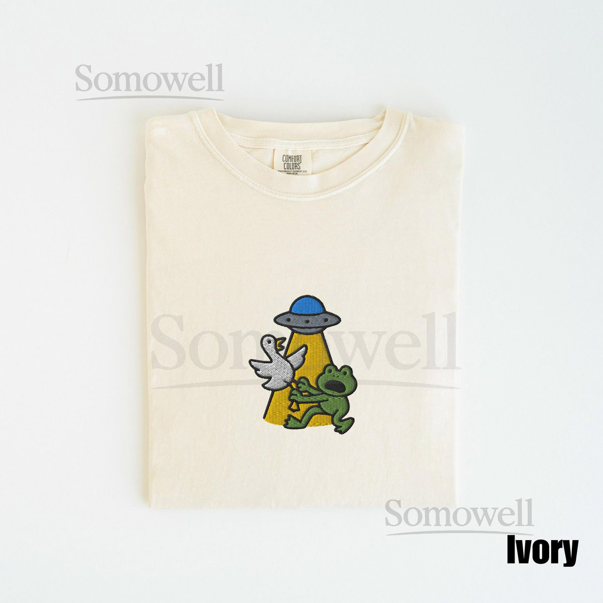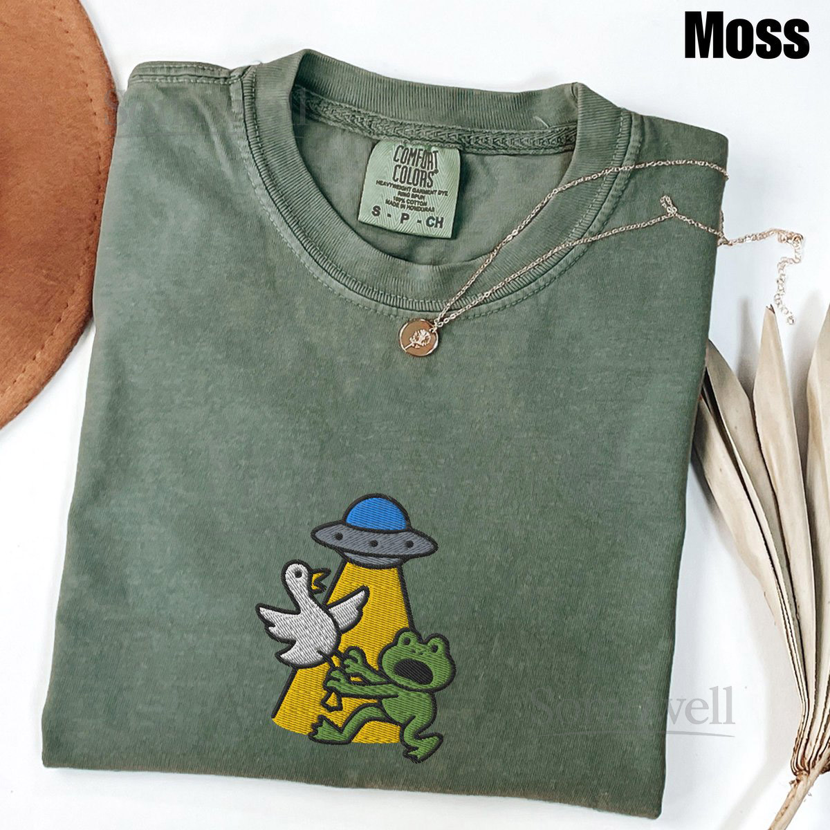 Goose Abduction Embroidered Comfort Colors T-Shirt Frog and UFO Funny Shirt Weirdcore Animal Tee Alien Abduction Gift for Her or Him_119