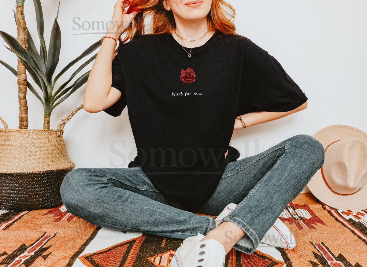 Hadestown Embroidered Comfort Colors T-Shirt Wait For Me Embroidered Top Broadway Musical Theatre Unisex Tee_122