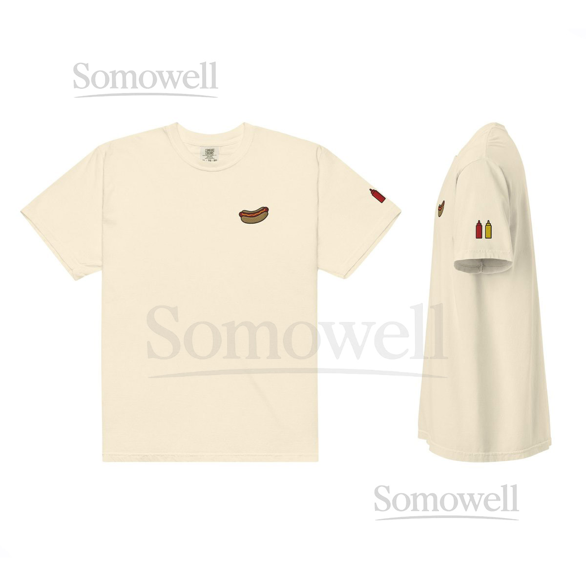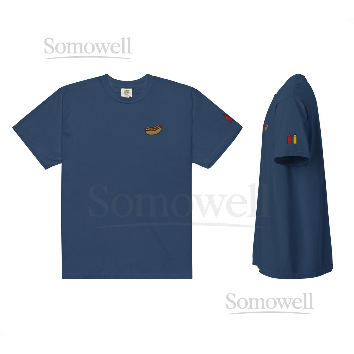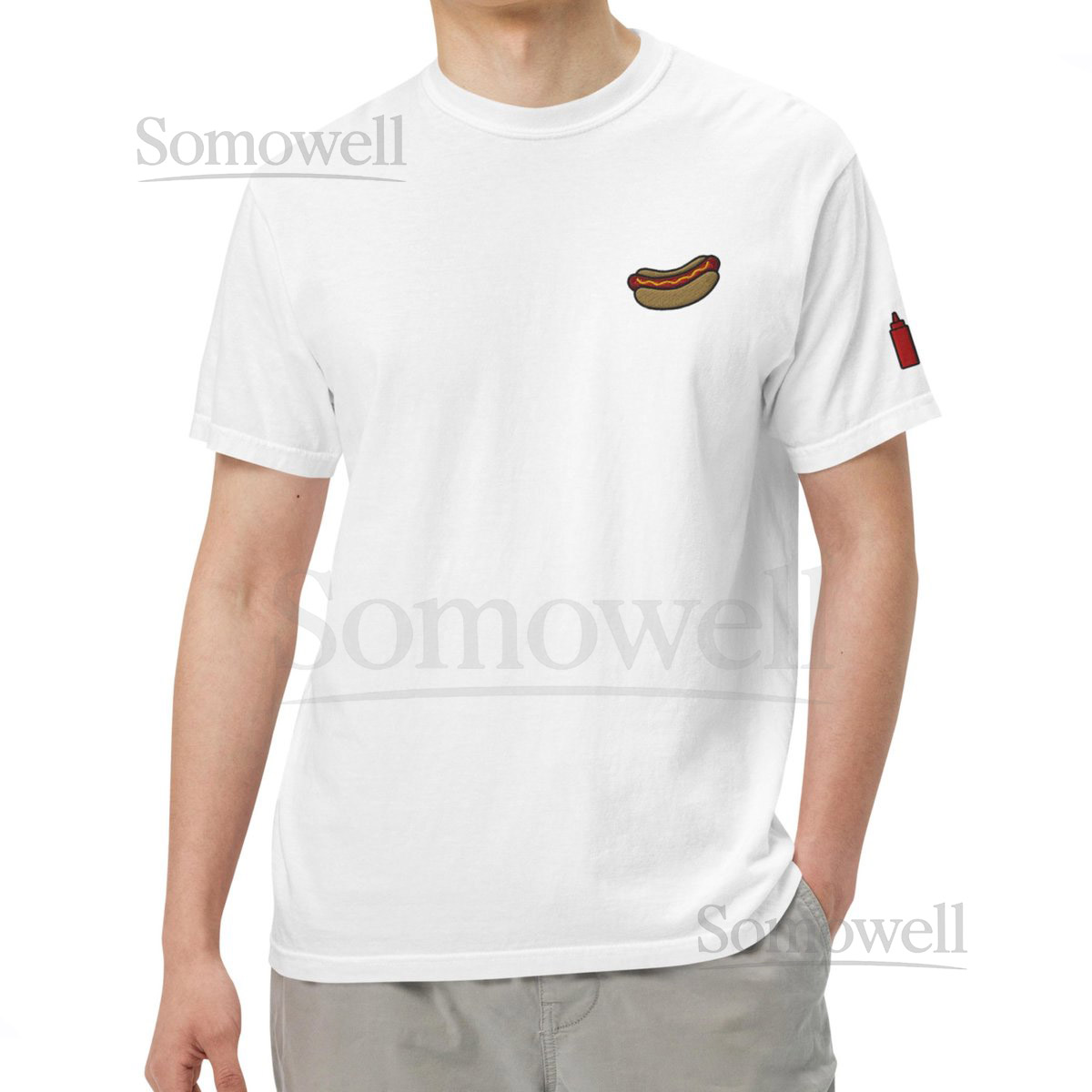 Hot Dog Embroidered T-Shirt Summer Tee_125