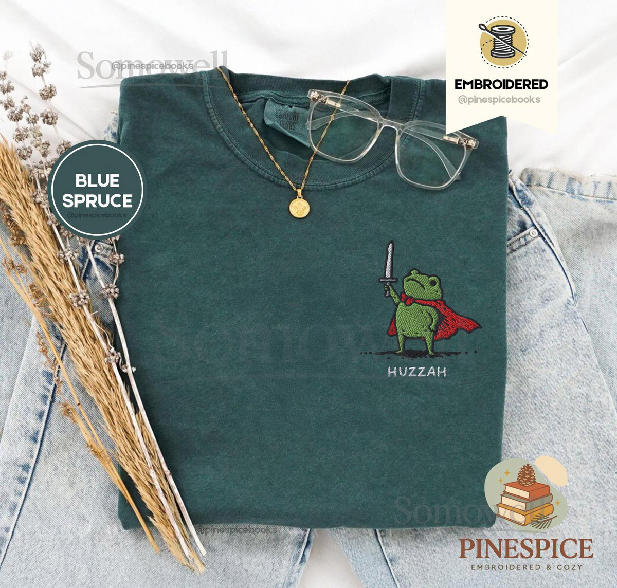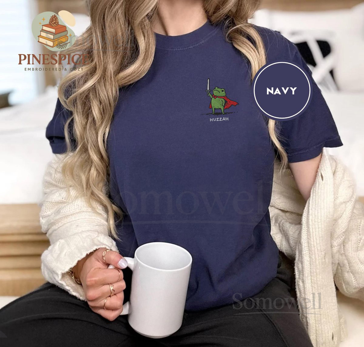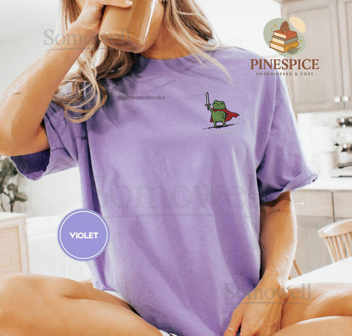 Huzzah Frog with Sword Tee Embroidered Medieval Frog Shirt Comfort Colors 1717 Funny DnD T-Shirt Renaissance Faire Frog Gift_127