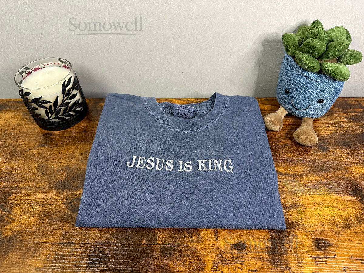 Jesus Is King Shirt Comfort color Christian Clothing Jesus Clothing Jesus T-Shirt Embroidered Shirt_133