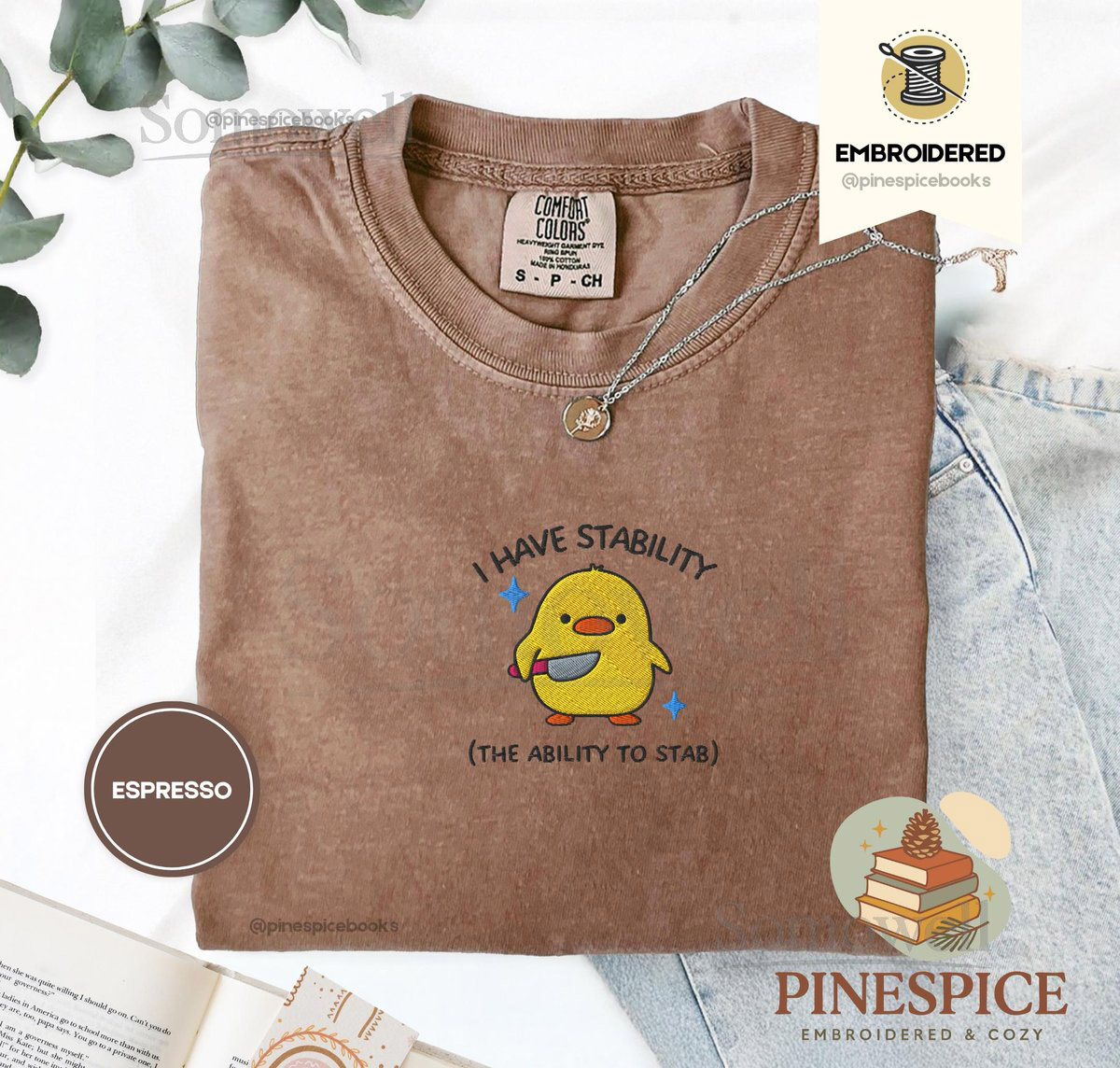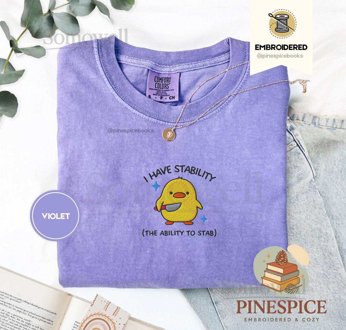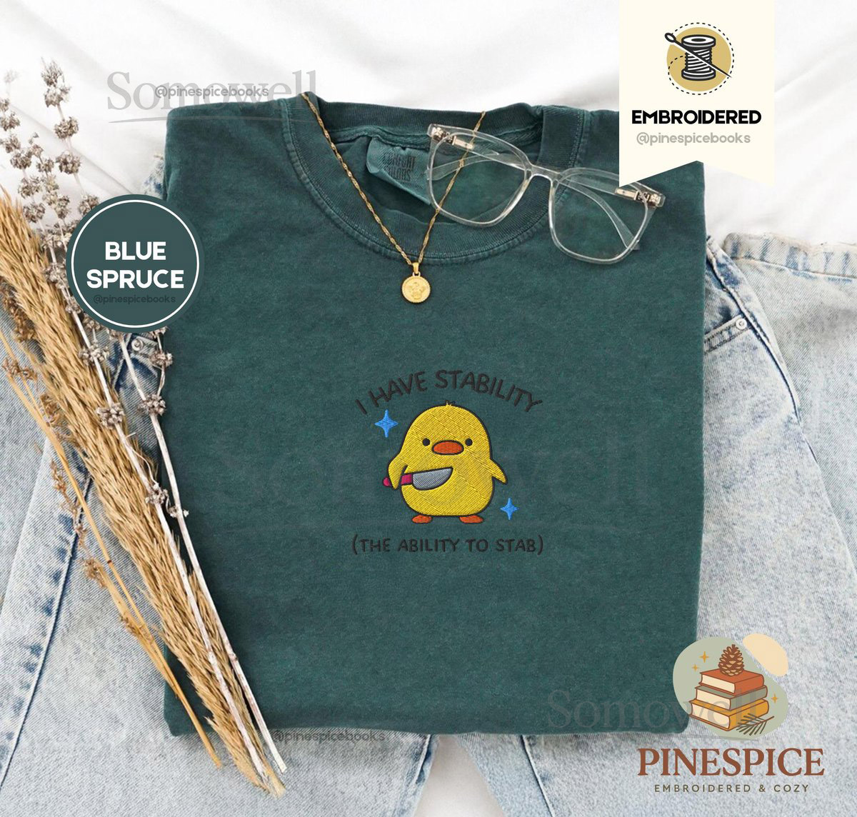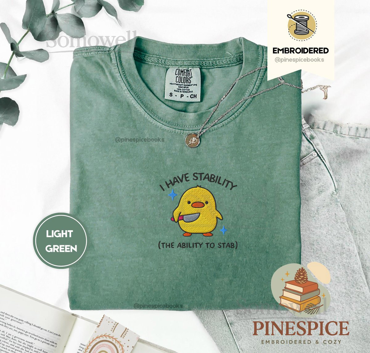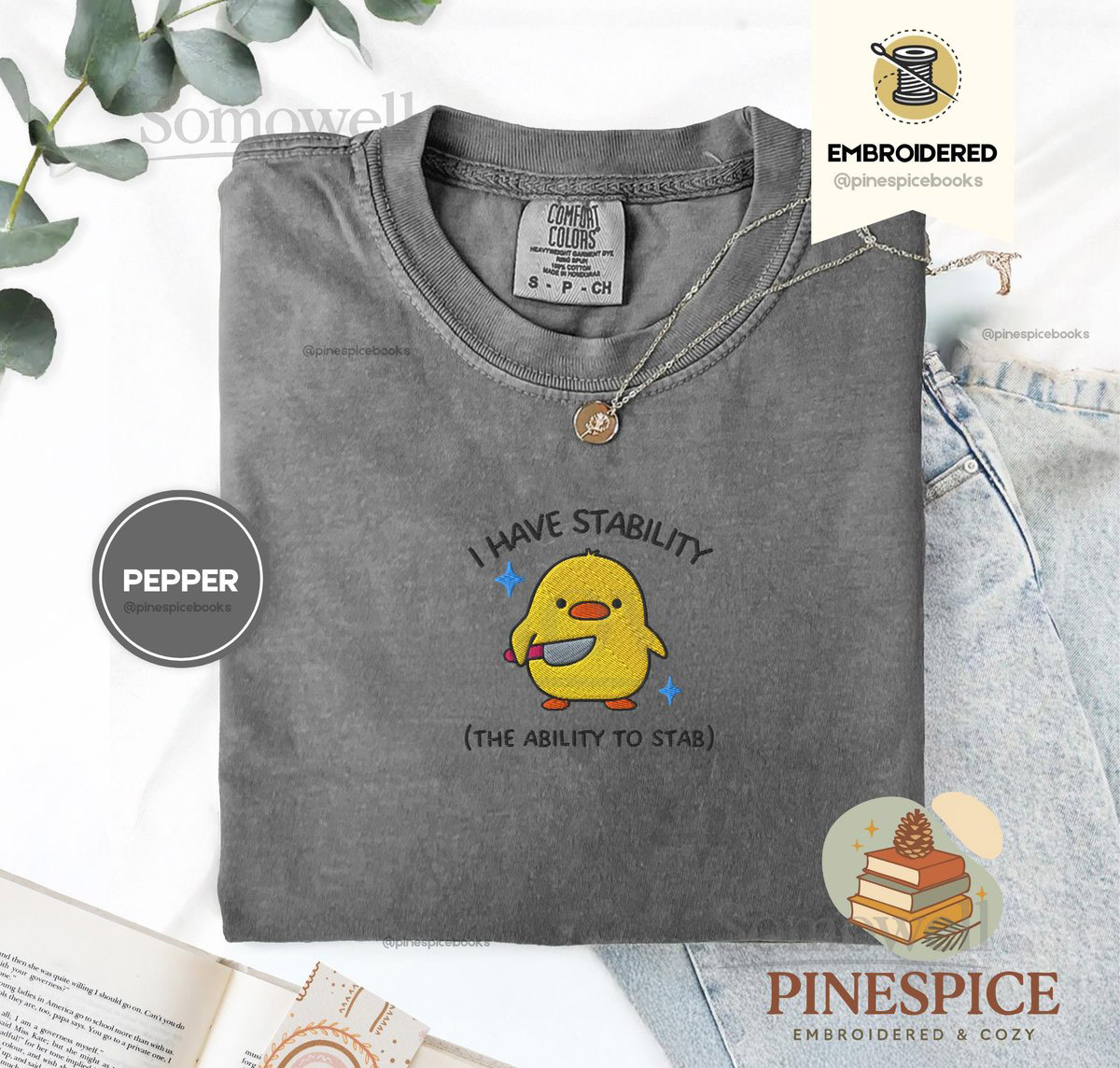 I Have Stability Shirt Funny Duck Embroidered Tee Comfort Colors 1717 Wholesome Meme Shirt Cute Animal Gift Silly Duck T-Shirt_129