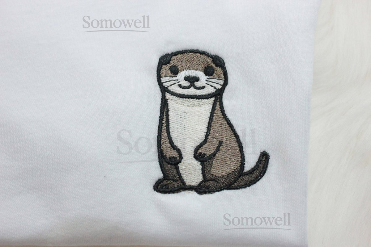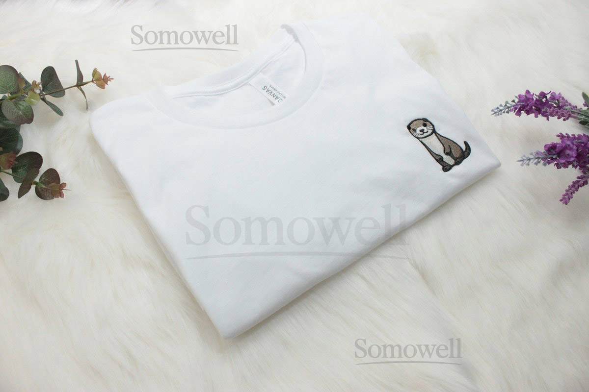 Otter Embroidered T-Shirt Embroidered Crewneck Unisex Shirt Short Sleeve Shirt – Multiple Colors_152