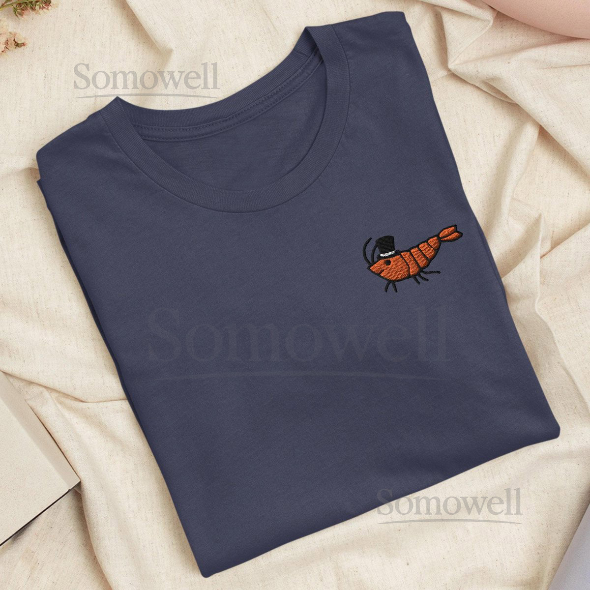 Shrimp with Top Hat Embroidered T-Shirt Lightweight Cotton Unisex Fit_163