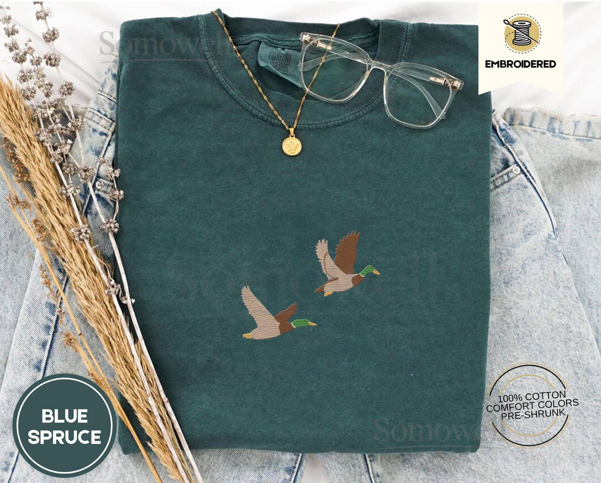 Vintage flying mallard ducks embroidered comfort colors tshirt cozy nature shirt duck hunting outdoors wear camping shirt hunter gift_178