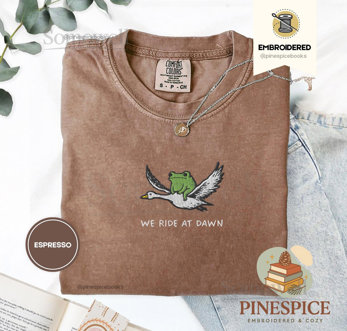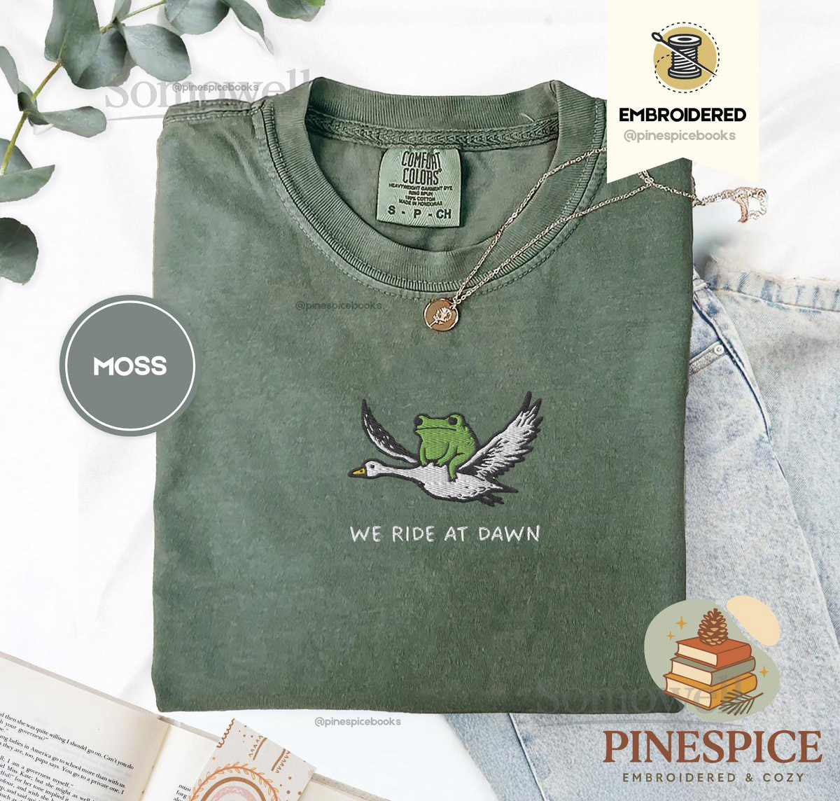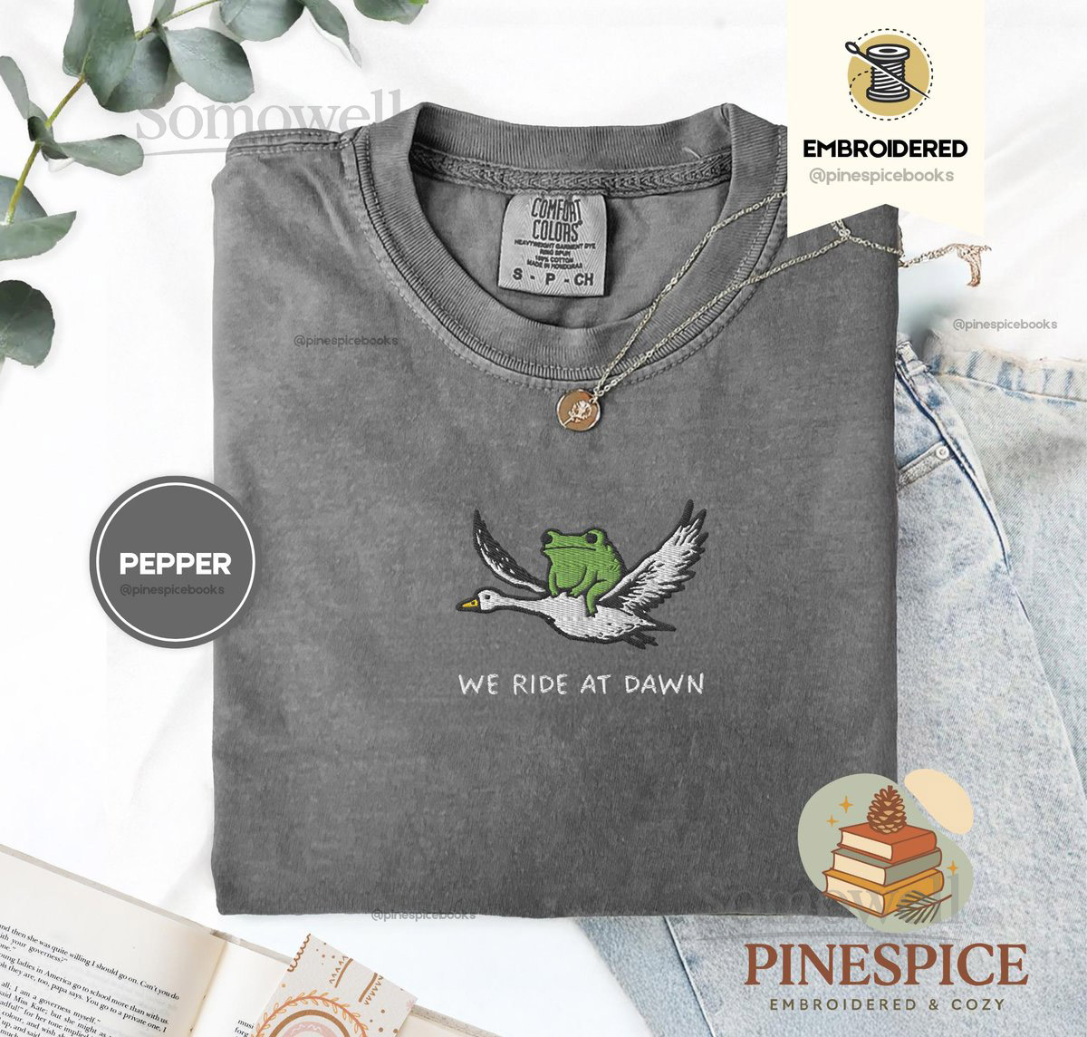 We Ride at Dawn T-Shirt Funny Frog and Goose Tee Embroidered Comfort Colors 1717 Chaotic Animal Shirt Whimsical Gamer Gift_182