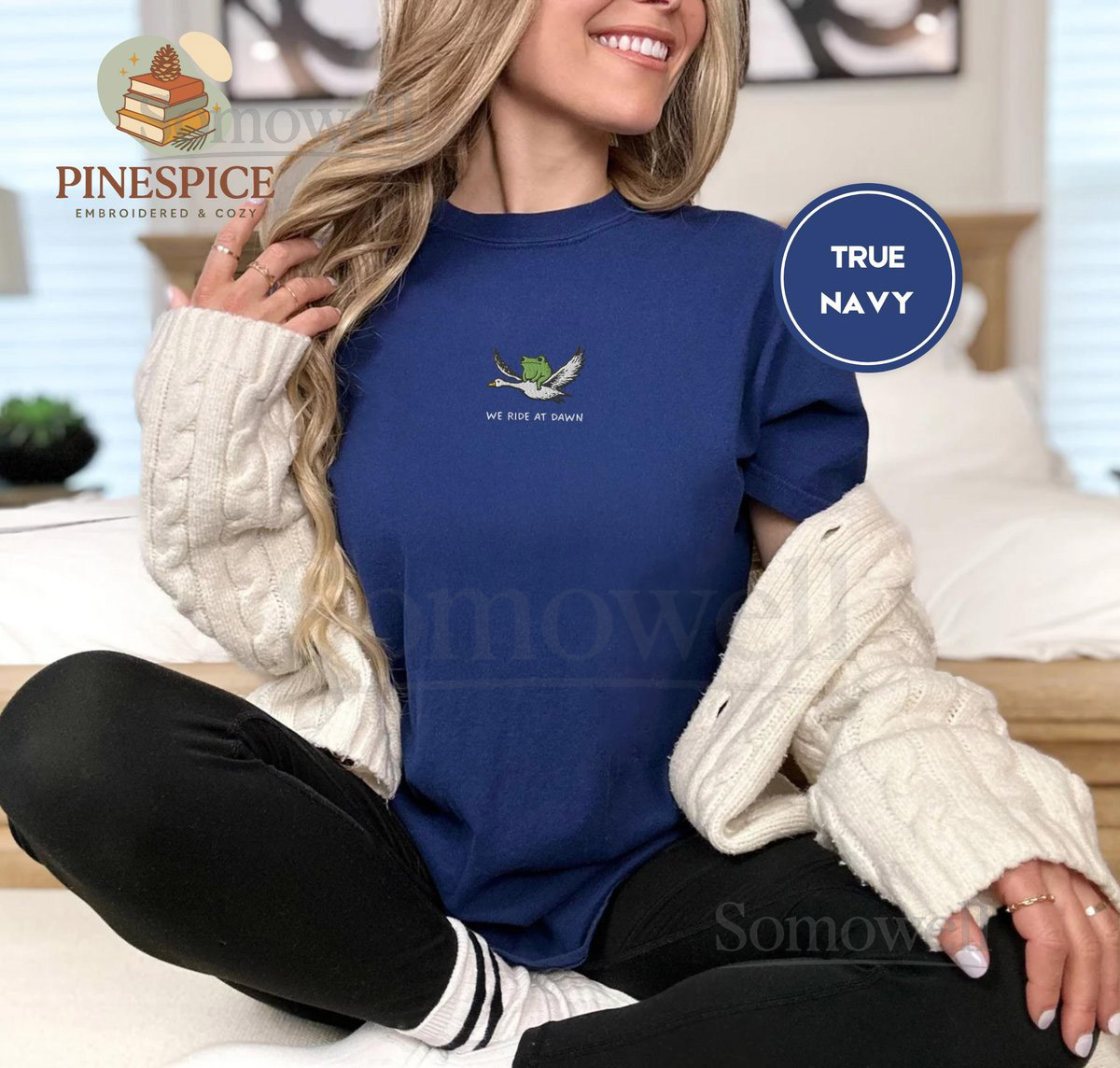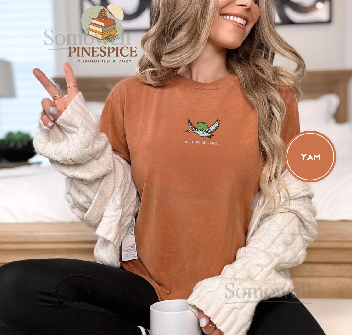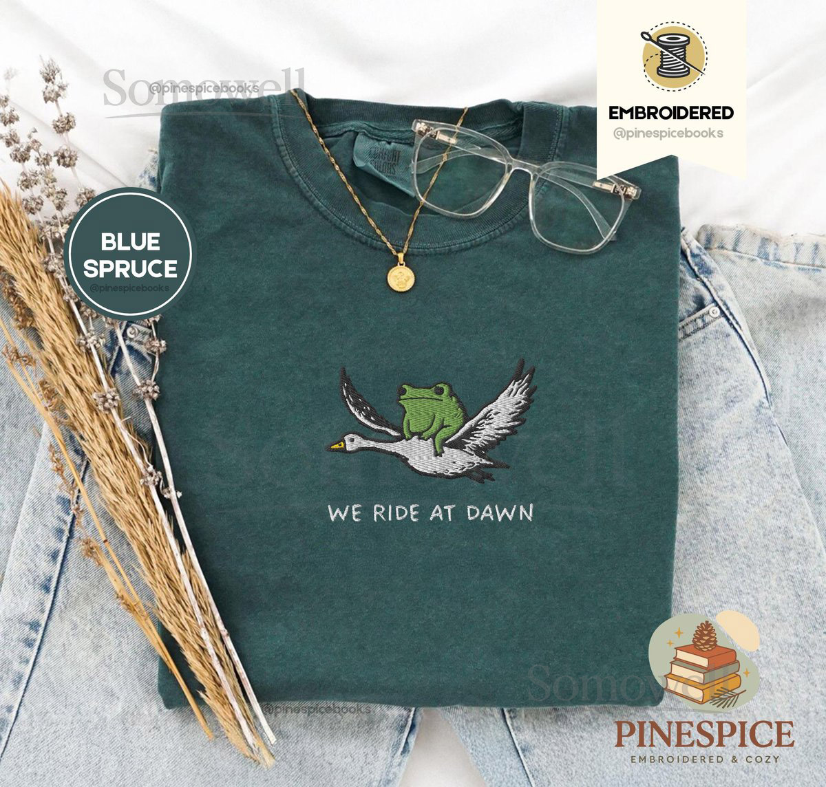 We Ride at Dawn T-Shirt Funny Frog and Goose Tee Embroidered Comfort Colors 1717 Chaotic Animal Shirt Whimsical Gamer Gift_182
