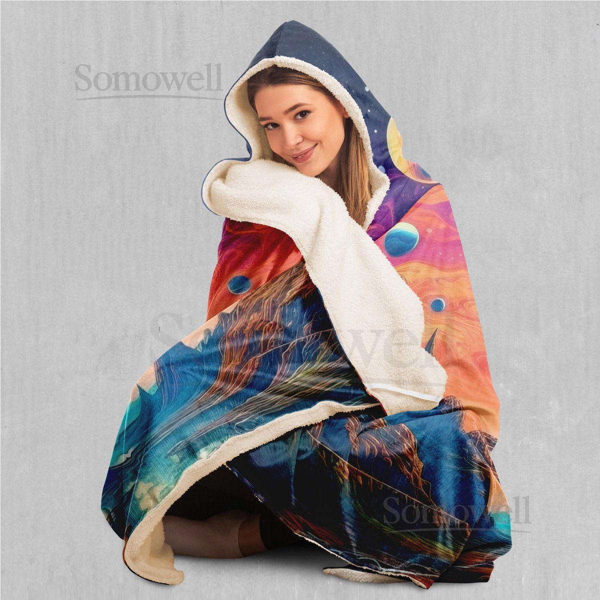 Astral Odyssey Nebula Galaxy Space Sherpa Microfleece Cape Hooded Blanket_5