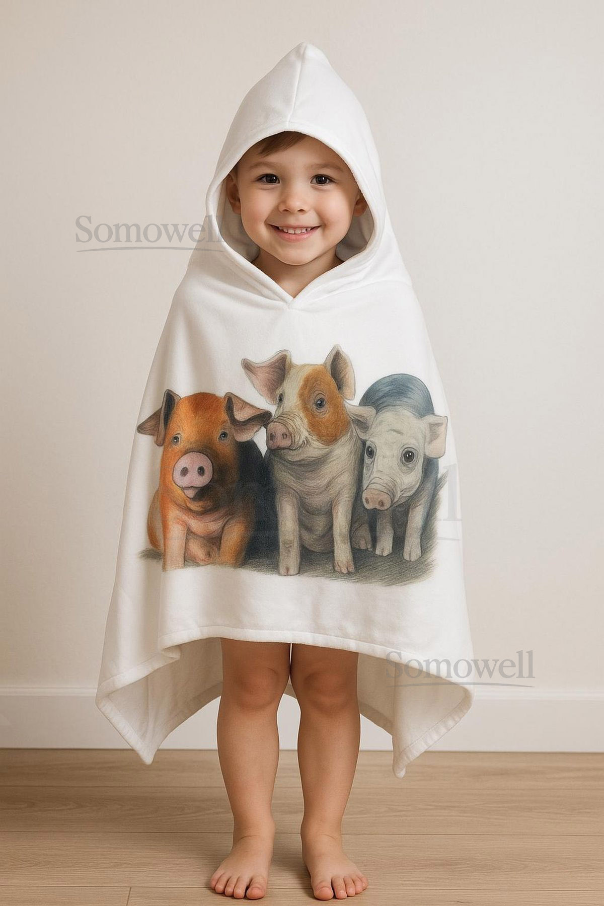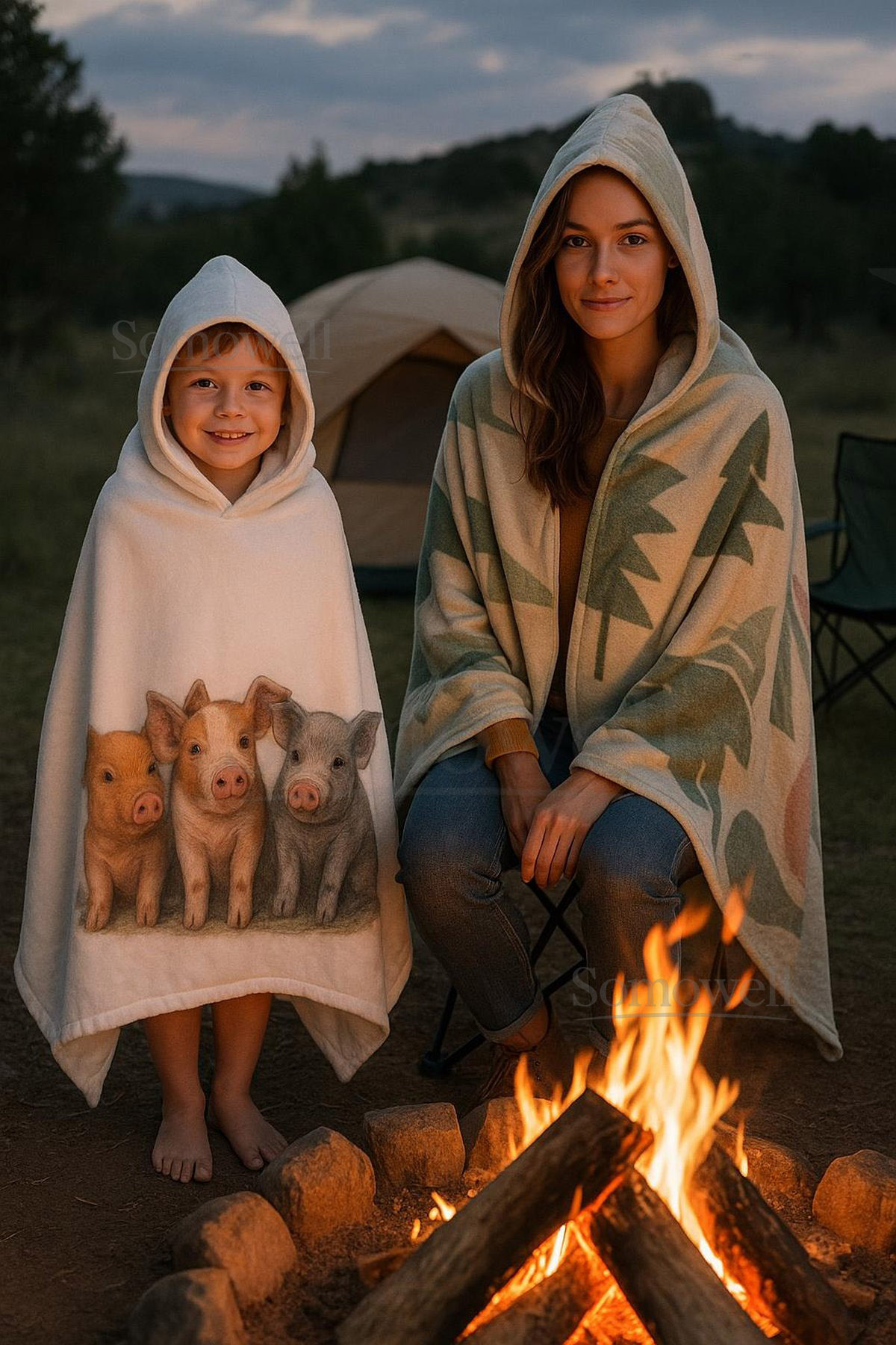 Farmyard Cheeky Pigs Premium Adult Hooded Blanket soft fleece wrap AdultsKids Warm Snuggle HoodieThrow_37