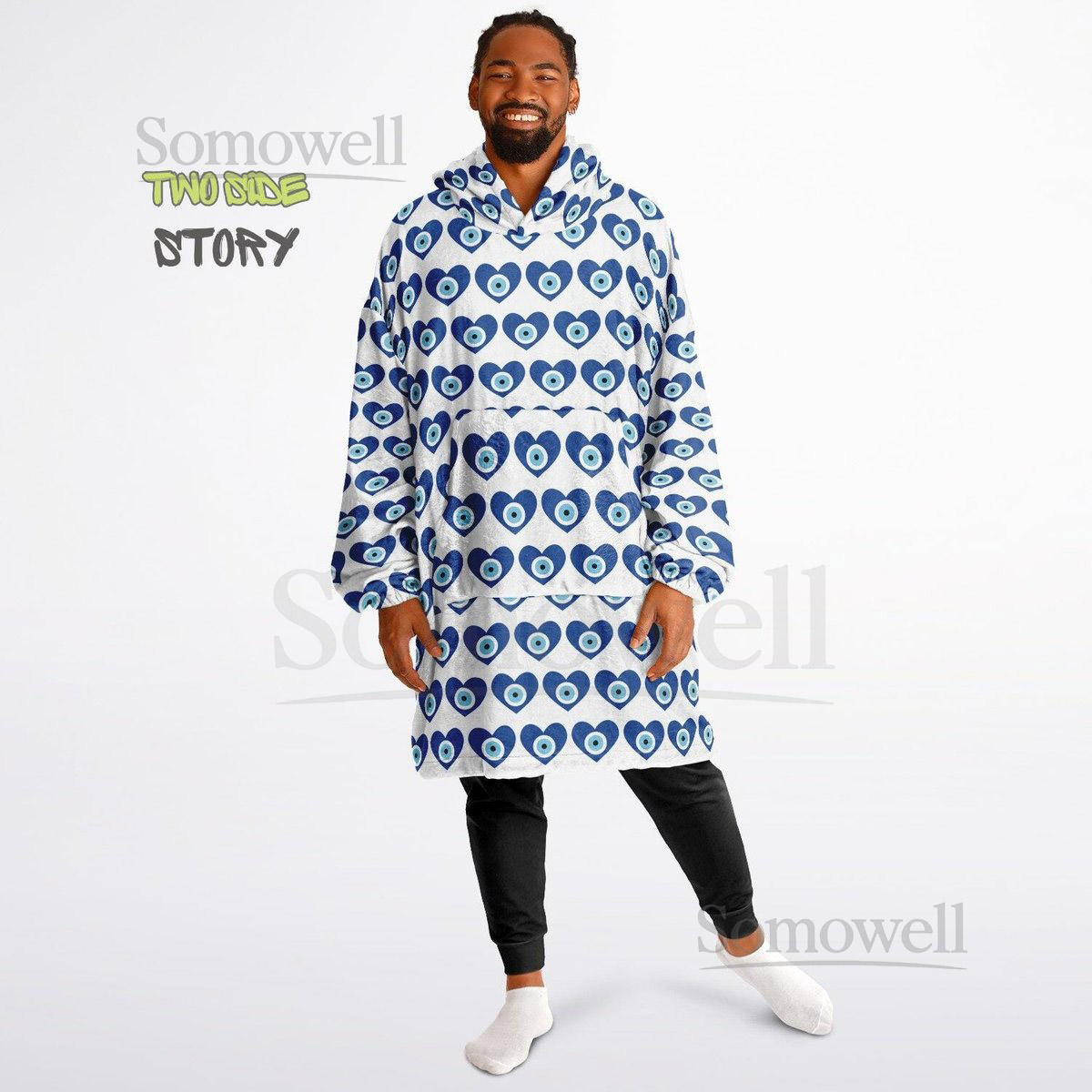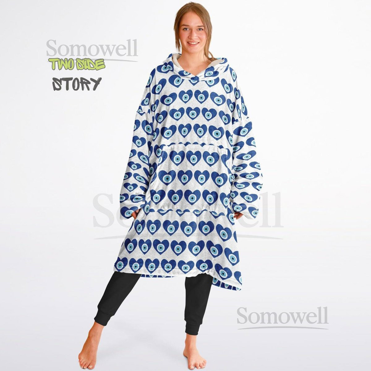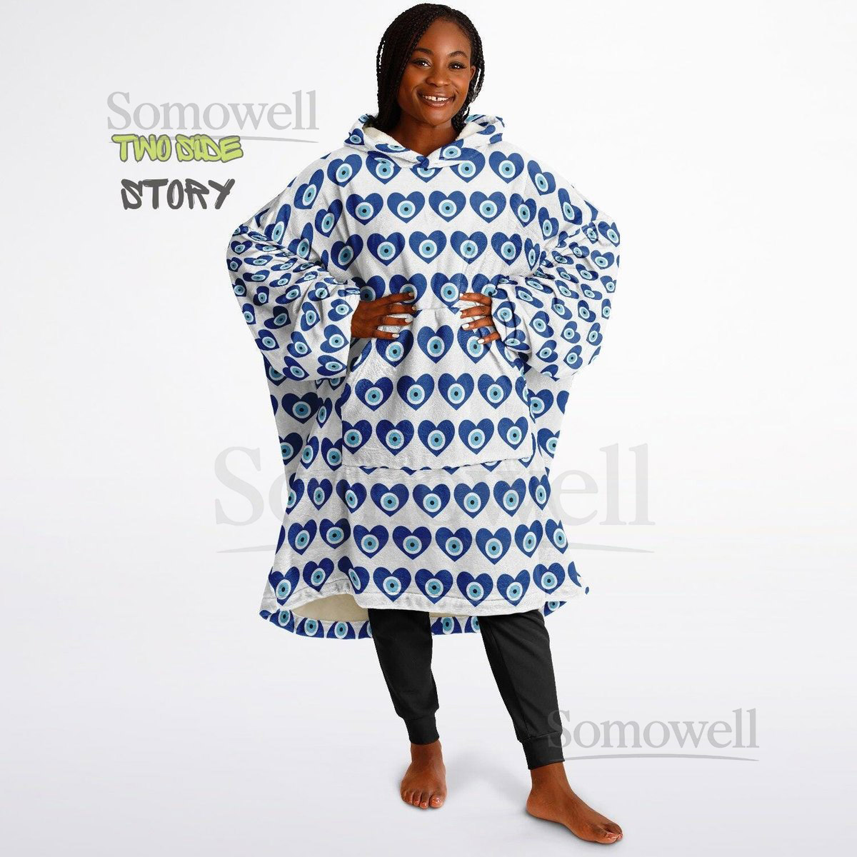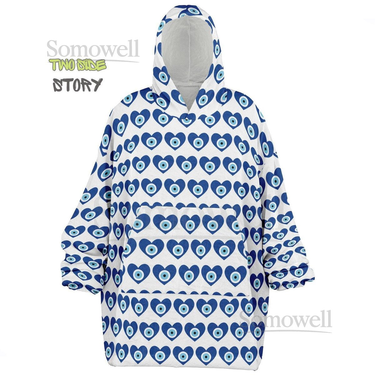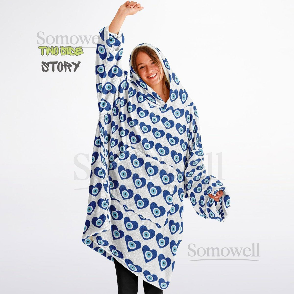 Evil Eye Print Snug HoodieMykonos Eye Printed Hooded Blanket with SleevesLounge WearUniqueNovelty GifstNovelty Birthday Christmas Gifts_36