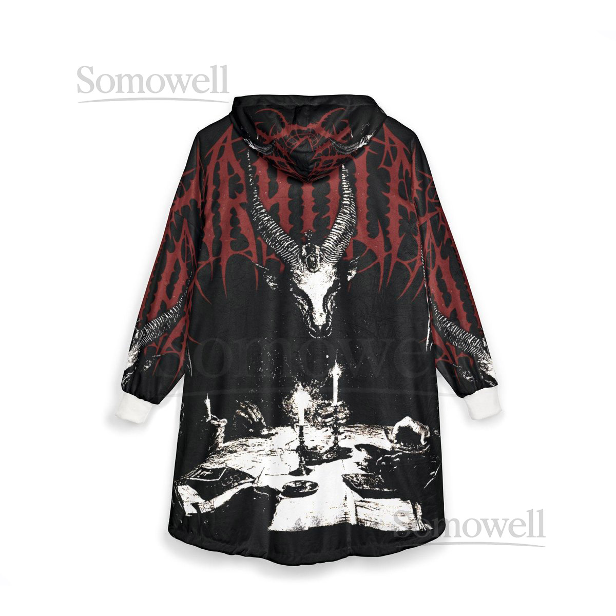 Gothic Baphomet Hooded Blanket Alternative Grunge Aesthetic Cozy Wear Unisex Heavy Metal Witchy Warm Clothing witchcraft occult goth_44