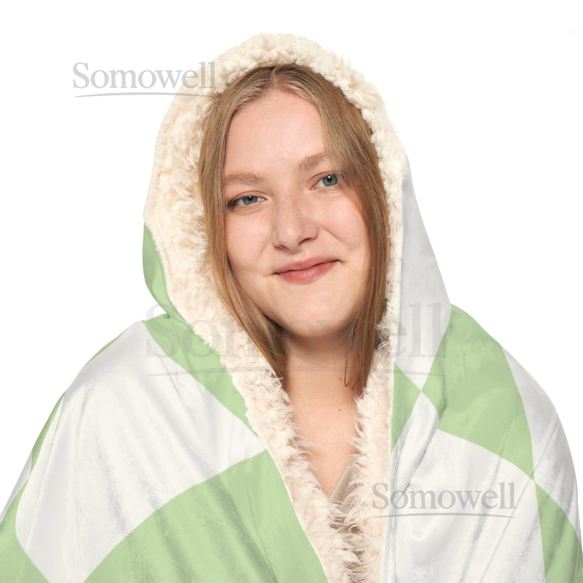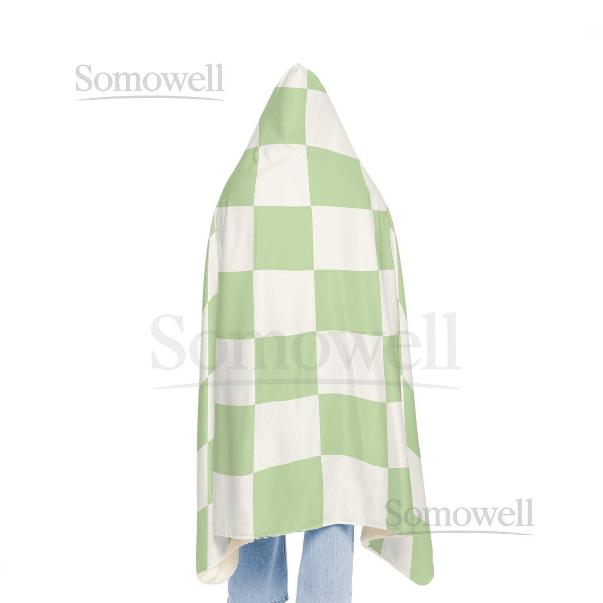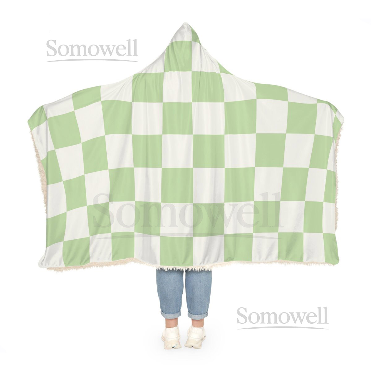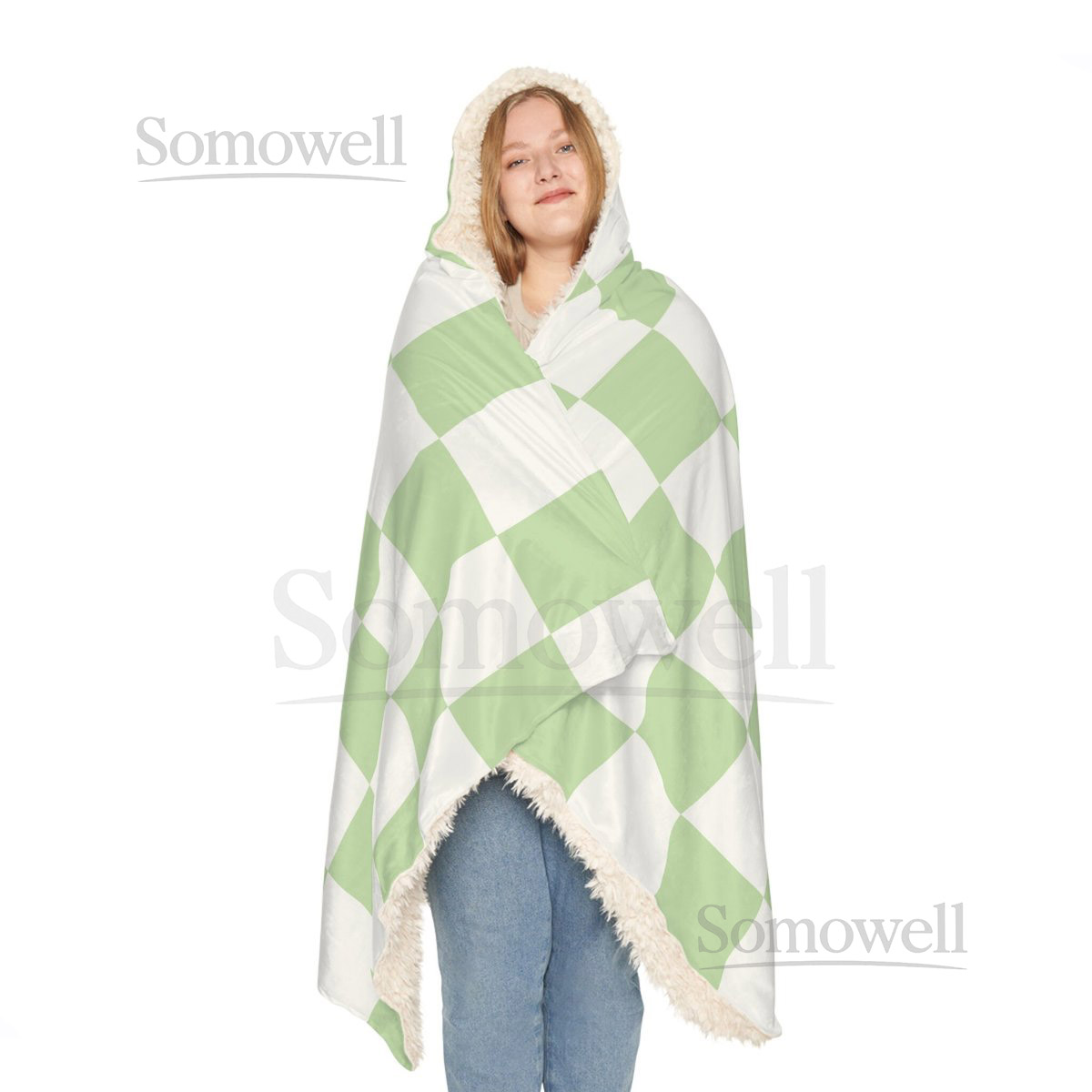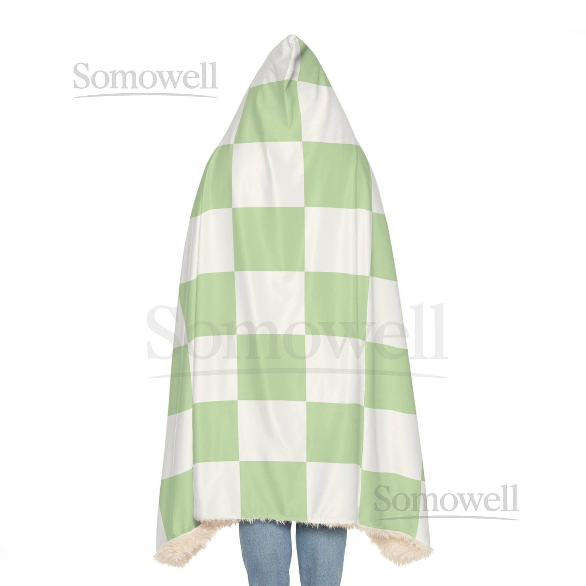 Green Checkered Hooded Blanket Oversized Blanket Hoodie Sherpa Fleece Adult Cape Wearable Snuggle Throw Gift for her Christmas_46
