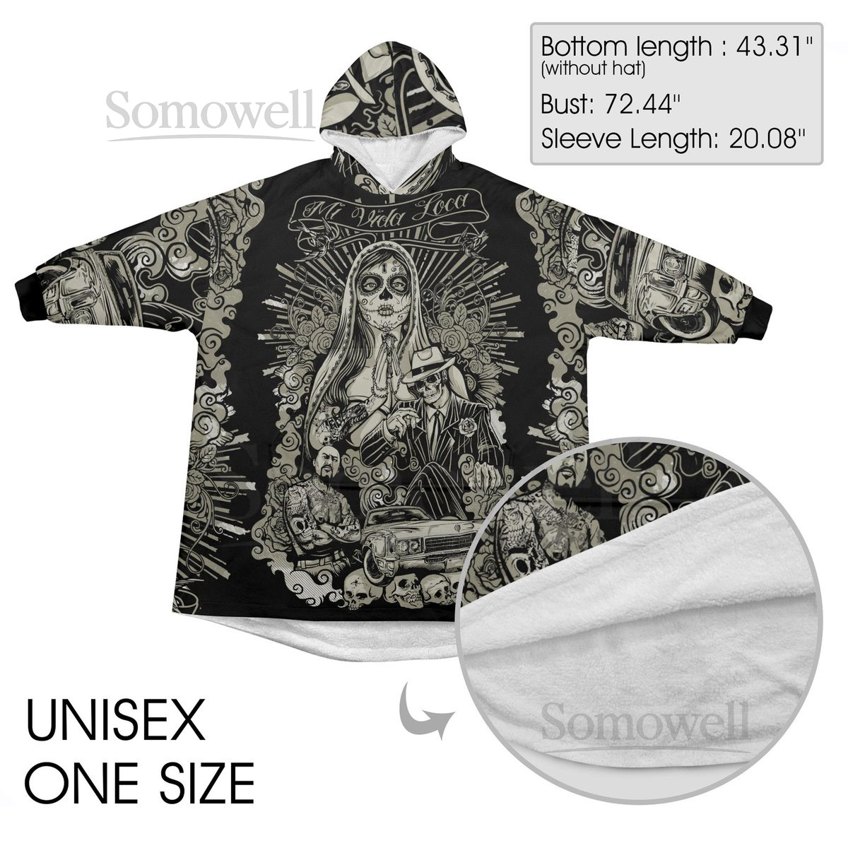 Mi Vida Loca Blanket Hoodie Día De Los Muertos Day of the Dead_54