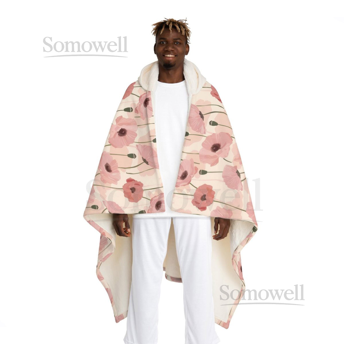Pink Poppy Hooded Blanket Poppies Blanket Hooded Sherpa Fleece Blanket Wearable Blanket Hooded Cape Hoodie Blanket Hooded Blanket Coat_64