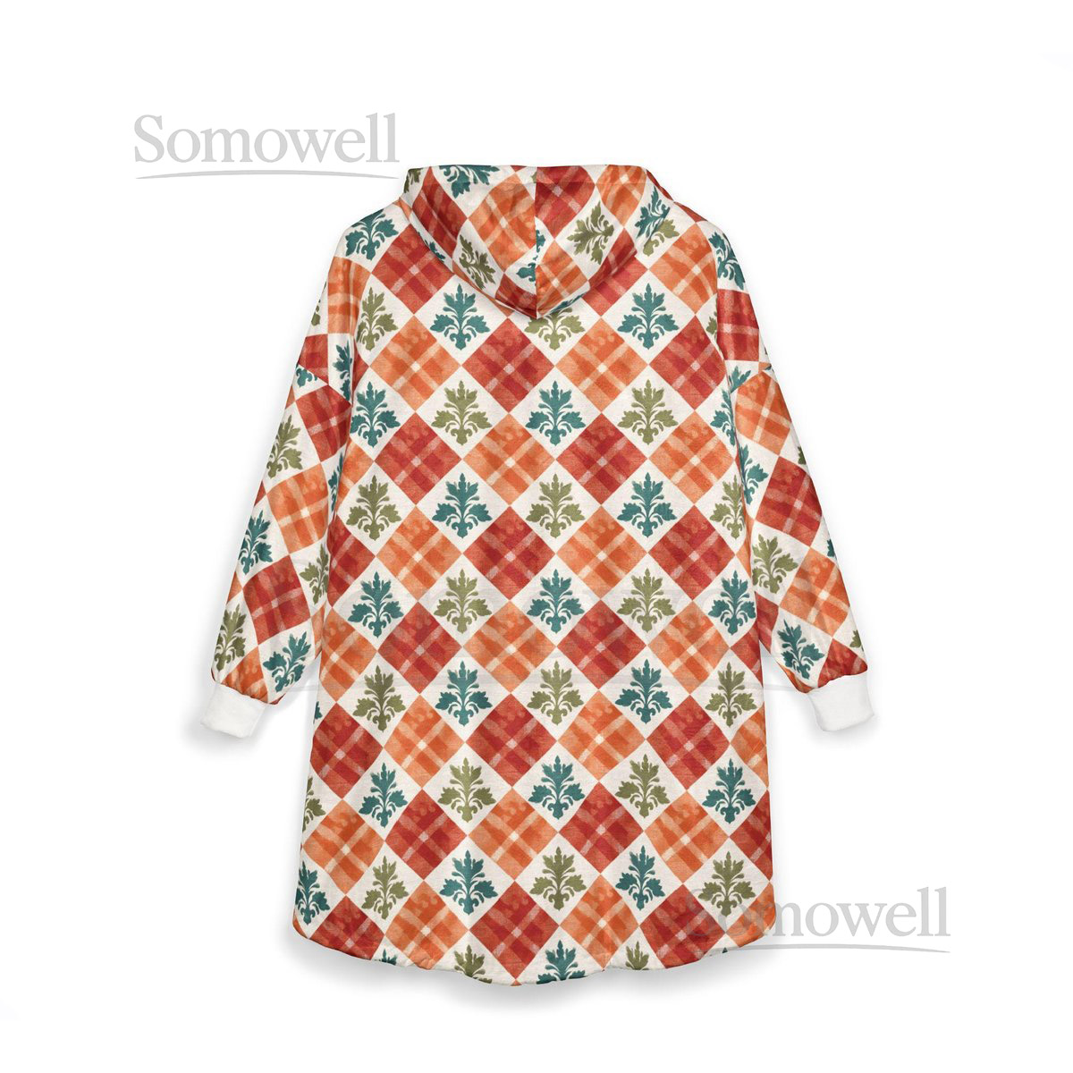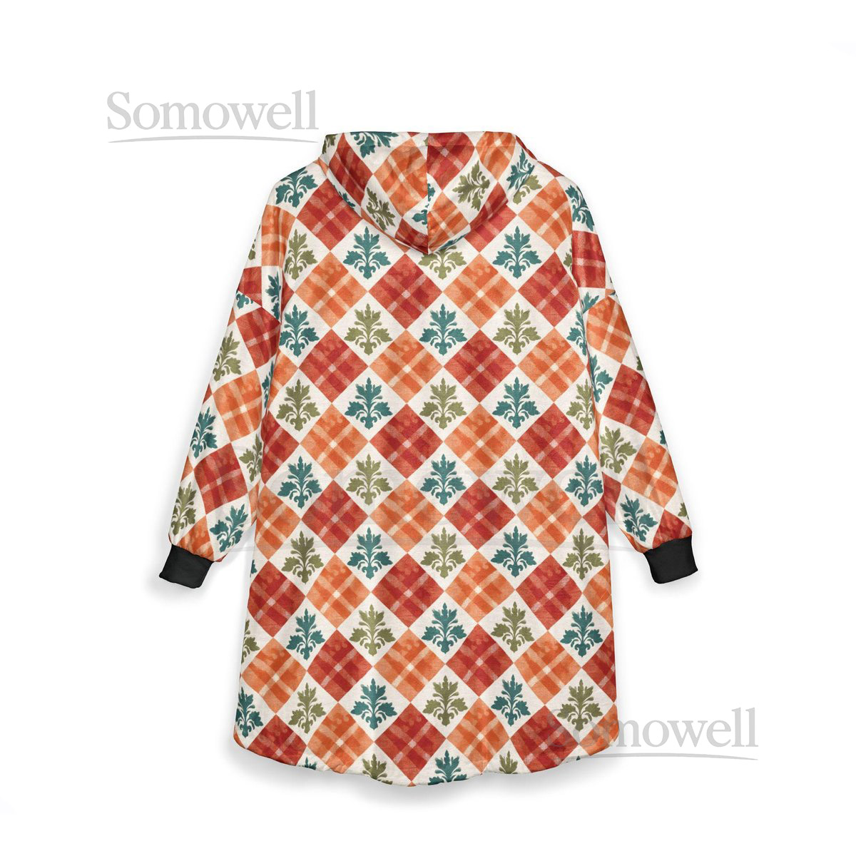 Unisex Hooded Blanket Oversized Wearable Hoodie Blanket One Size Fits All Outdoor Softball Snuggly Hoodie Cloak Colorful Damask Print_83