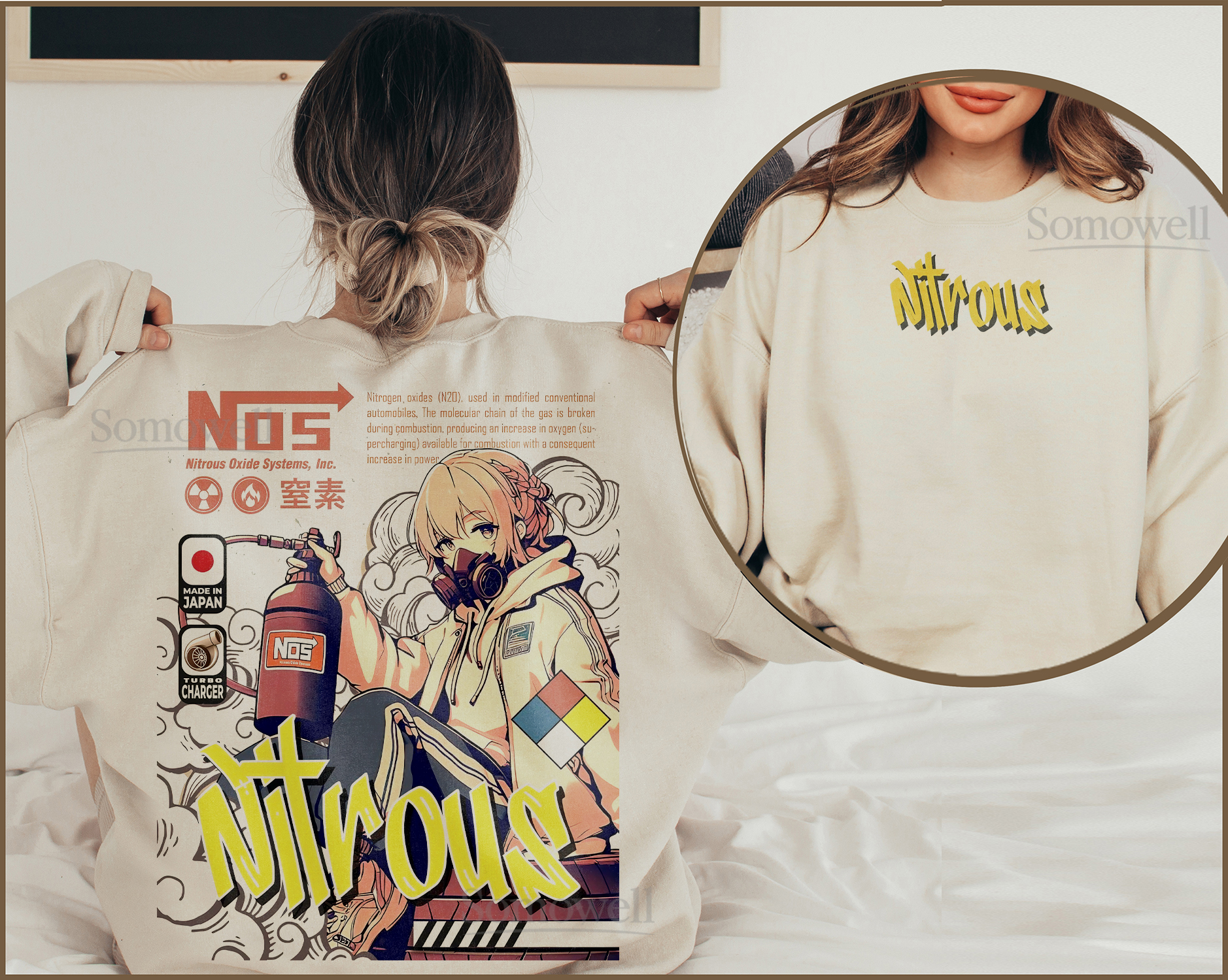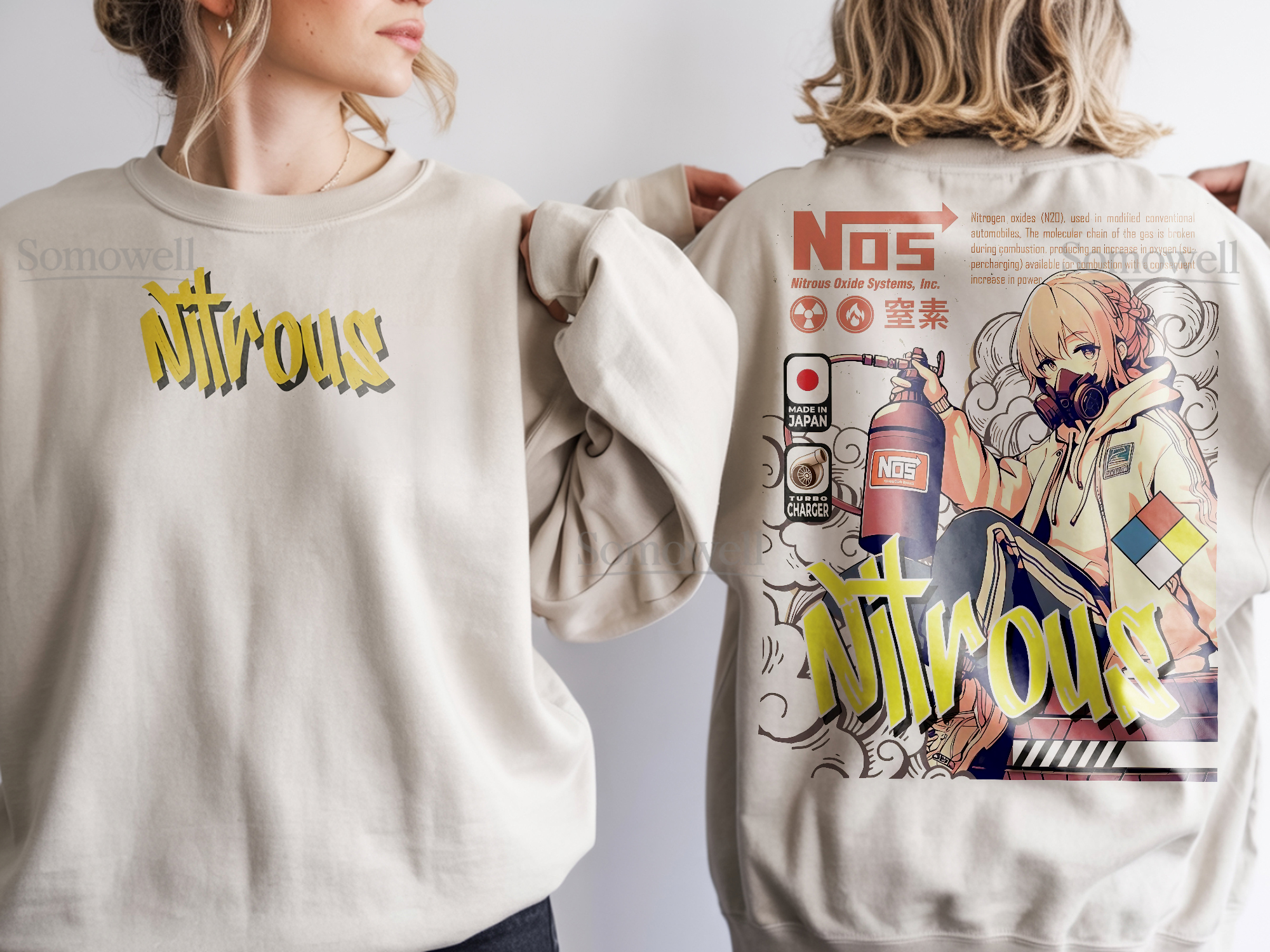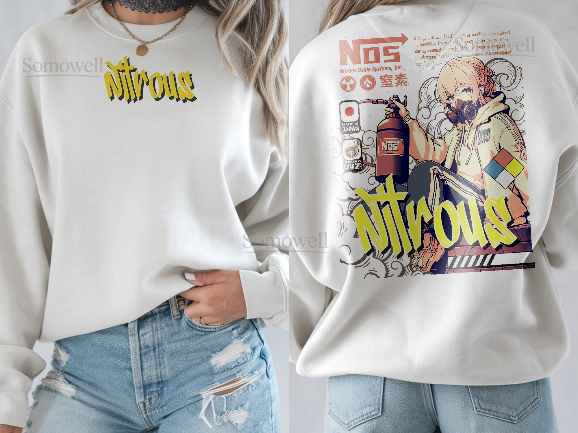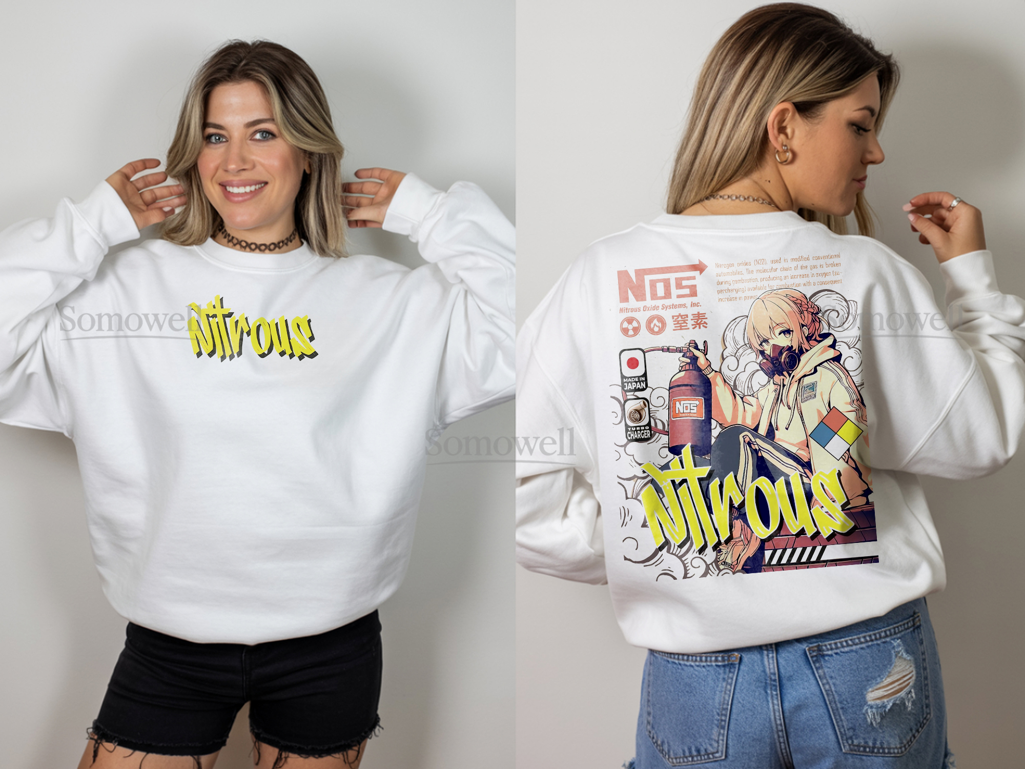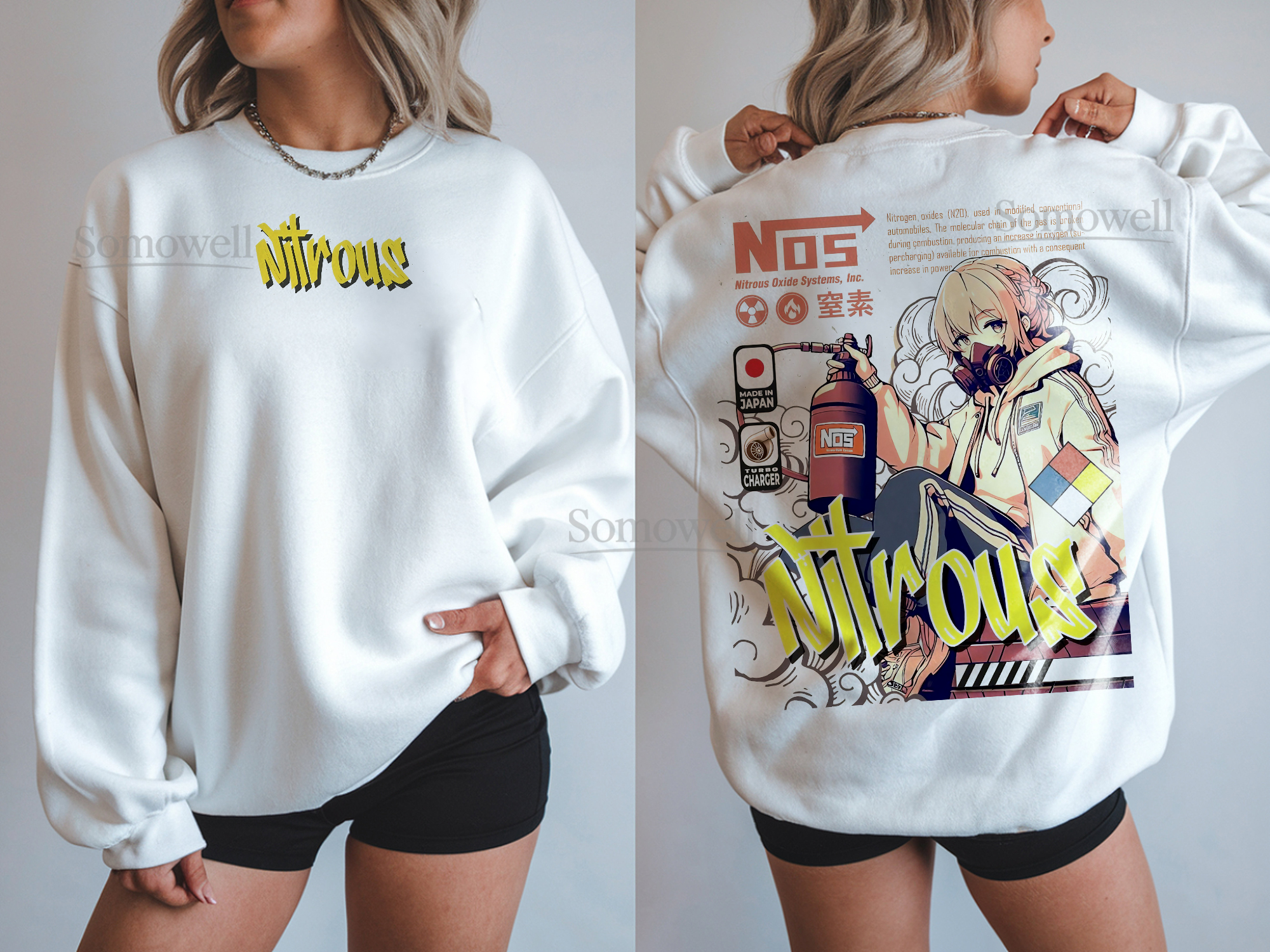JDM Nitrous Oxide NOS Anime Girl Sweatshirt Japanese Streetwear Oversized Vintage