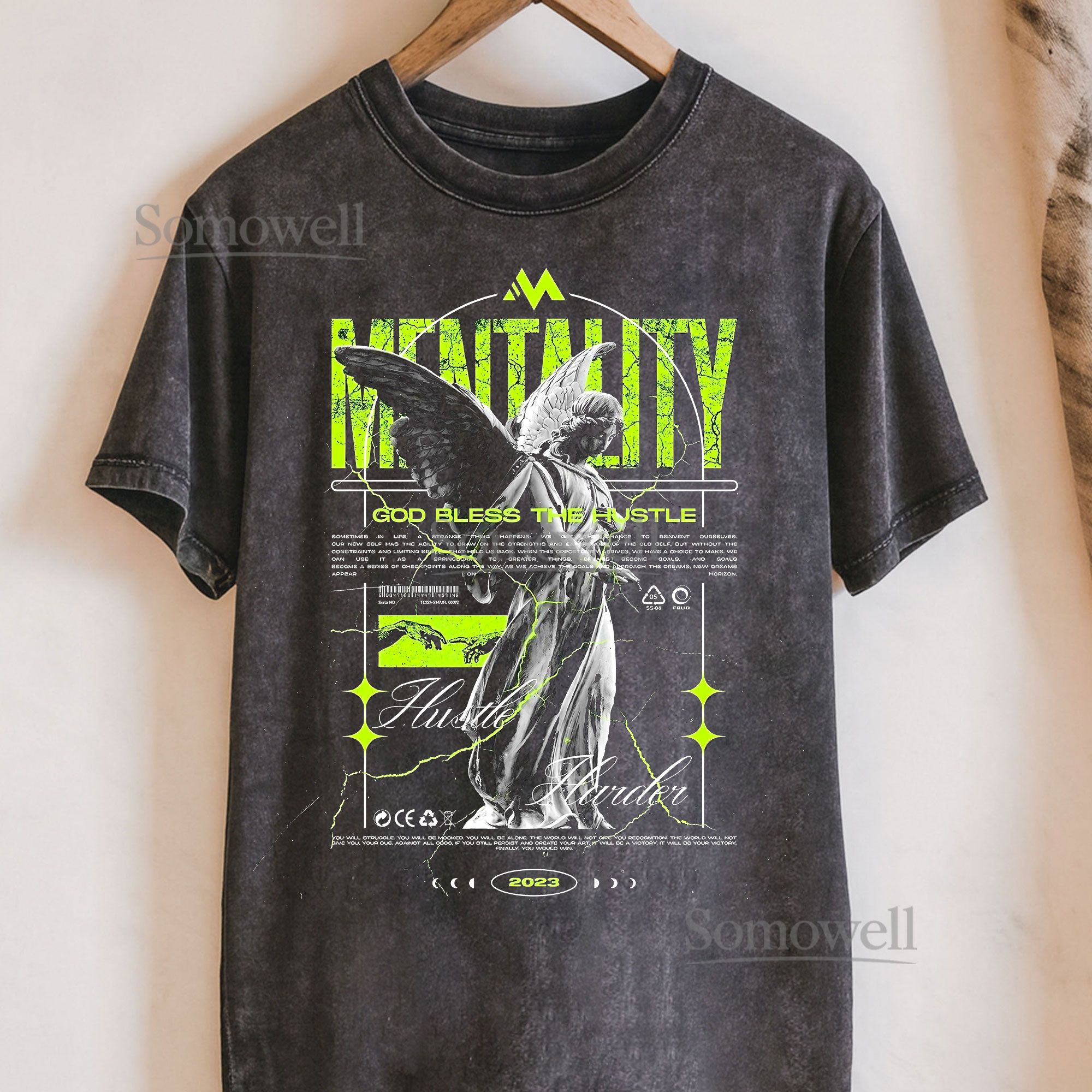 Mentality Hustler T-Shirt, Angel Graphic ,hoodie sweatshirt vintage, Motivational Print Shirt for Fans, Gift for Hustle and Ambition Enthusiasts