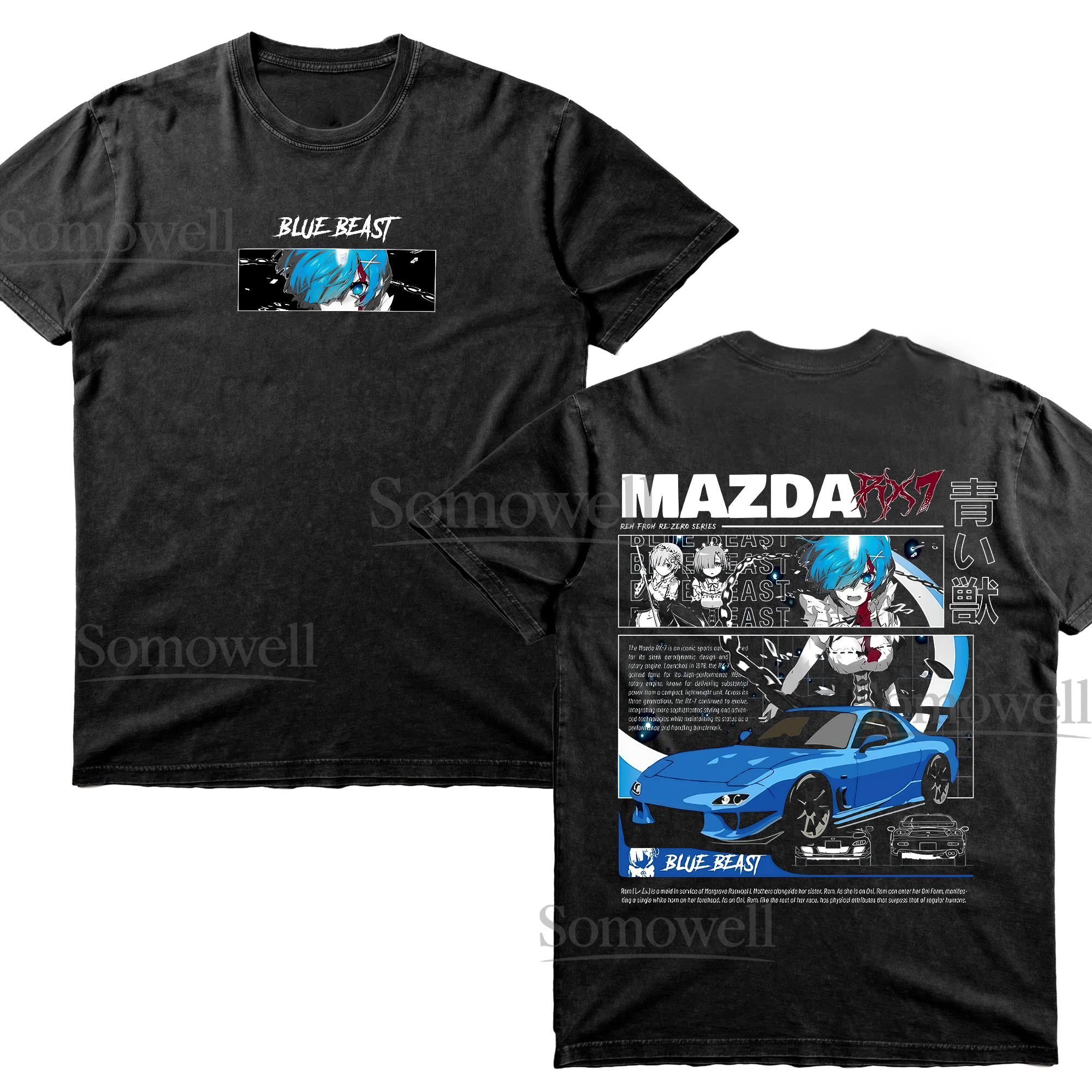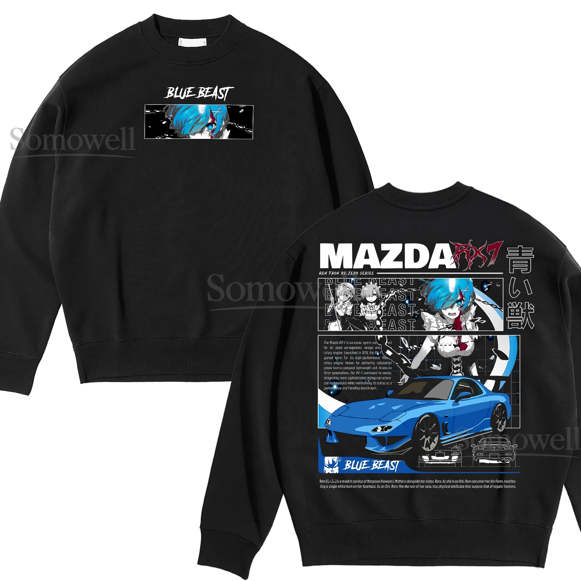 Re Zero Rem Blue Beast Mazda RX7 FD JDM TShirt Anime Manga Car ,hoodie sweatshirt vintage