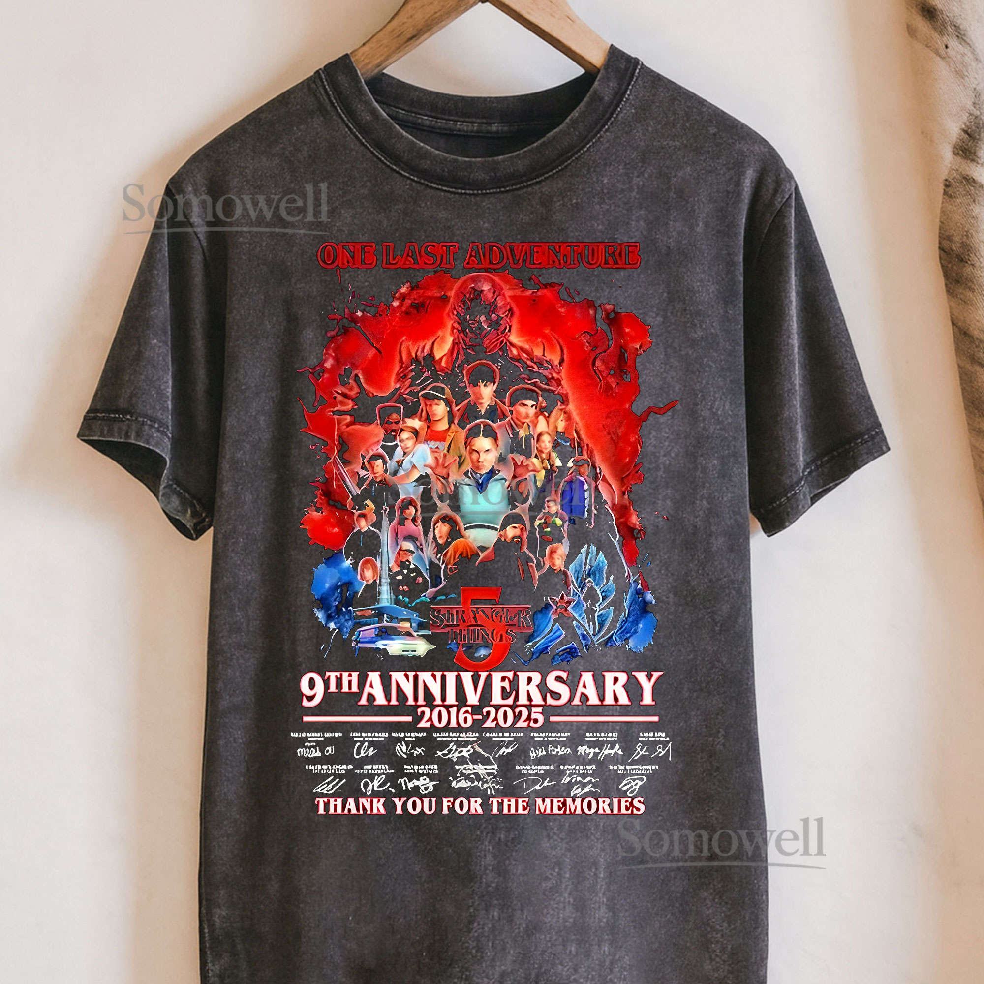 Stranger Things 9th Anniversary T-Shirt, Retro Cast Reunion Graphic ,hoodie sweatshirt vintage, Vintage Stranger Things Poster Shirt for Fans